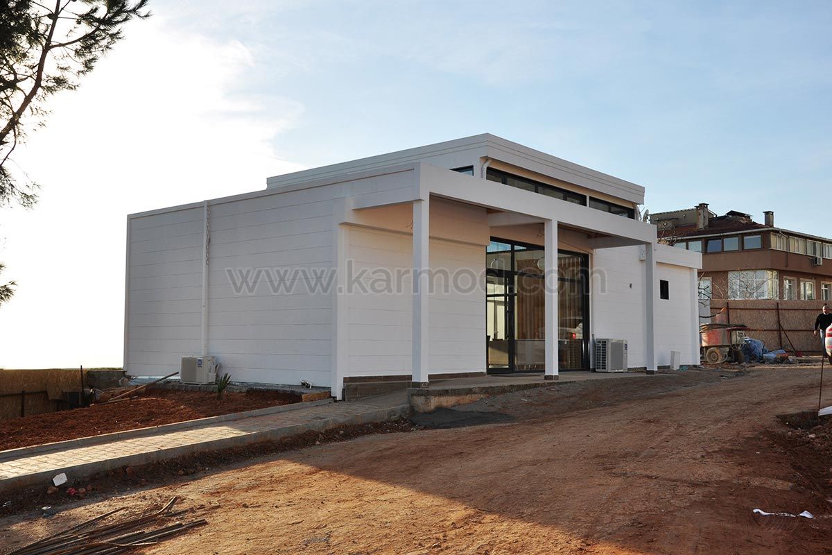 تم تصميم مكتب المبيعات المصنوع من الفولاذ الخفيف بمساحة 128 متر مربع فيبنديك/إسطنبول خصيصًا لعمليات إطلاق المشاريع السكنية. وبفضل هيكله العصري المكون من طابق واحد، فإنه يمثل علامتك التجارية بأفضل طريقة ويسمح لك بالترحيب بزوارك في بيئة احترافية. تم الانتهاء من هذا المشروع في17 يوماً فقط، وهو الحل المثالي للشركات التي ترغب في تسريع عمليات البيع والترويج .
