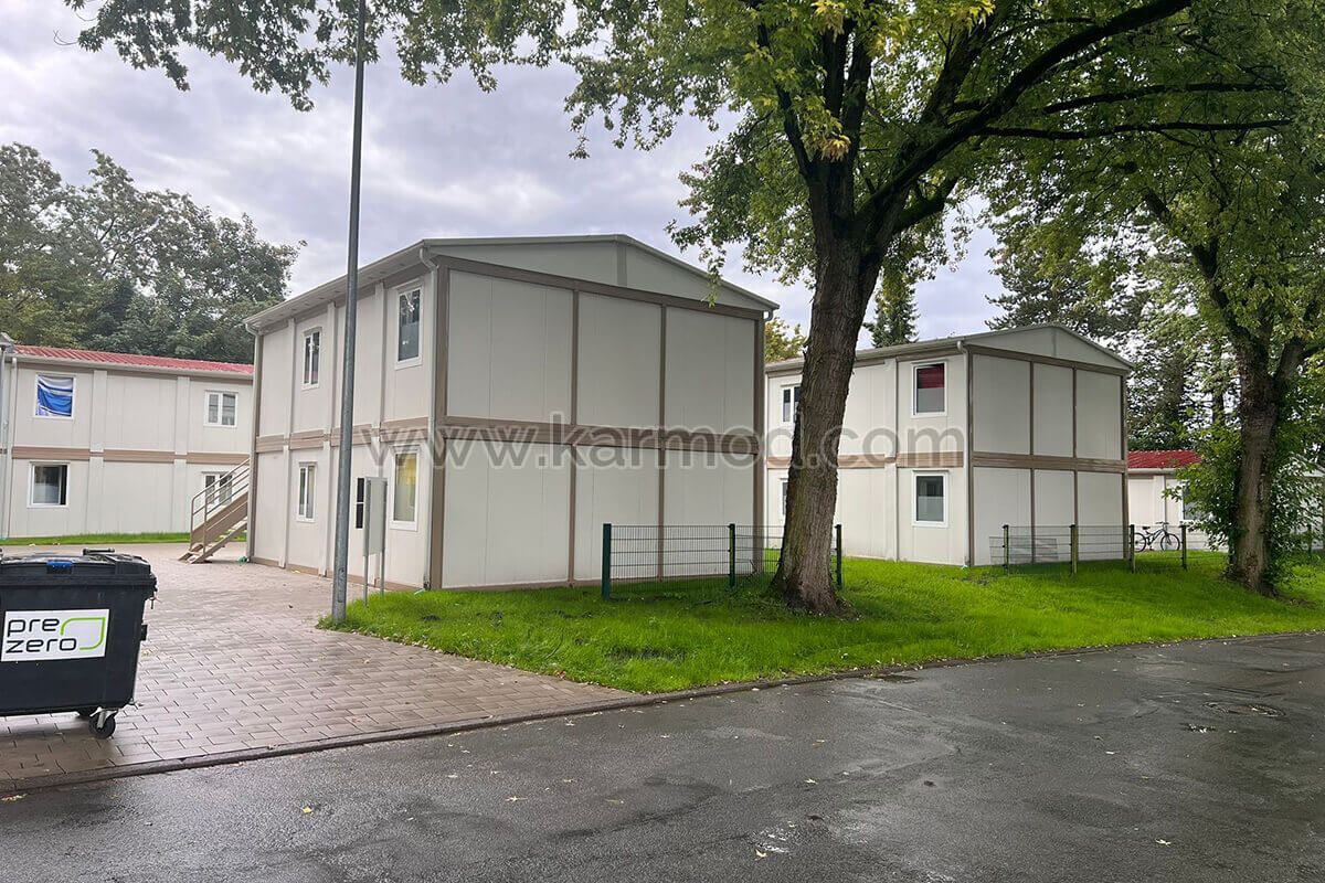 Sanitarios modulares con agua caliente, ventilación y sistemas de tratamiento de aguas residuales adaptados a las normativas locales.