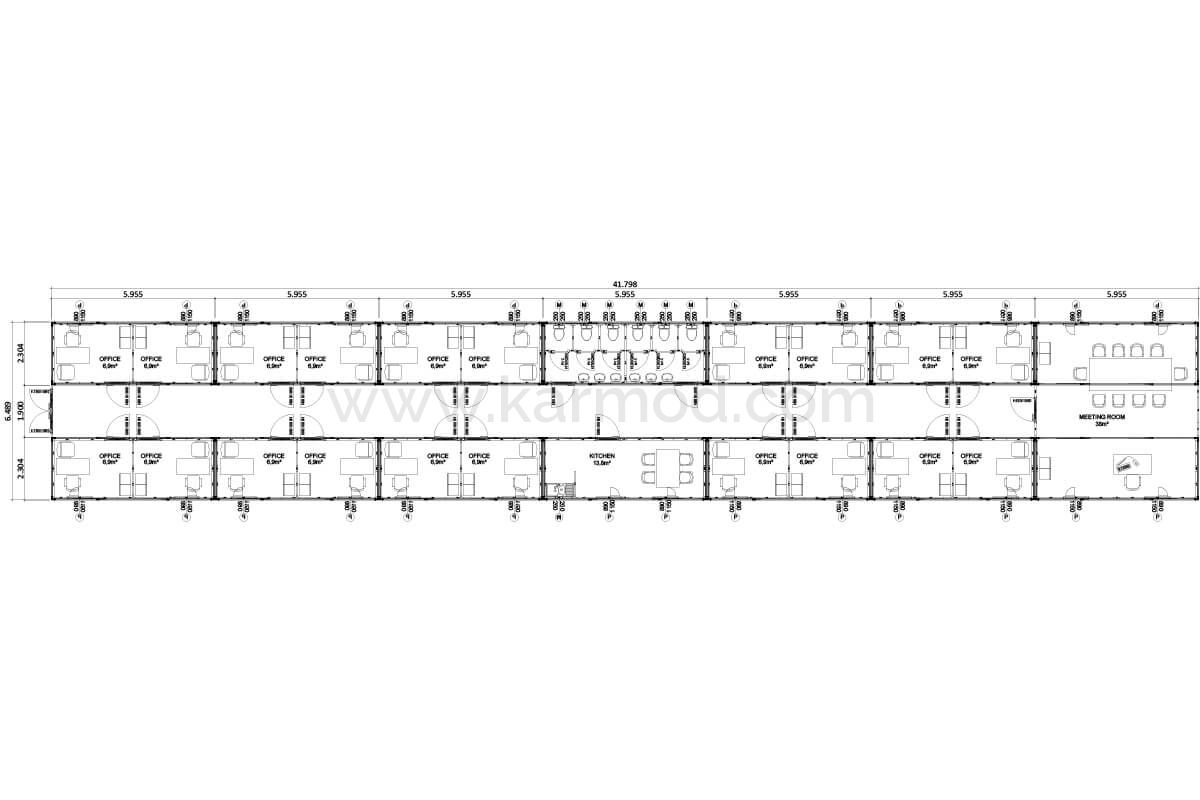 کانتینر اداری ۲۷۲ مترمربعی کارمود، با ارائه فضای کاری گستردهای برای ۲۰ نفر، راهحلهای مدرن و کاربردی را به نیازهای در حال تغییر دنیای کسبوکار عرضه میکند. این کانتینر اداری وسیع، با طراحی مدرن و کاربردی خود نظرها را به خود جلب میکند و محیطی ایدهآل برای کارایی بالای تیمهای بزرگ و دپارتمانها فراهم میآورد. ساختار قابل حمل آن، امکان استفاده انعطافپذیر در پروژهها و مکانهای مختلف را میدهد. کارمود، با این راهحل اداری مقرونبهصرفه و باکیفیت بالا، به رشد و توسعه کسبوکارها و سازمانها کمک میکند.