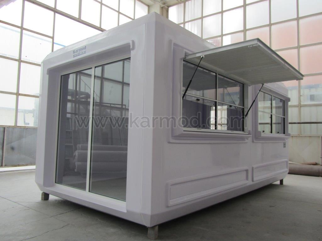 Okullar, hastaneler, belediyeler, parklar, çay bahçeleri, kent meydanları, askeri gazinolar gibi çok sayıda mekan için kantin kabini hem pratik hem ekonomik. Kullanıma hazır kantin ürünleriyle hemen kazanmaya başlayın. Çok sayıda büfe kabini modeline sahip Karmod kullanıma hazır, kolay taşınabilen satış büfeleri üretiyor.