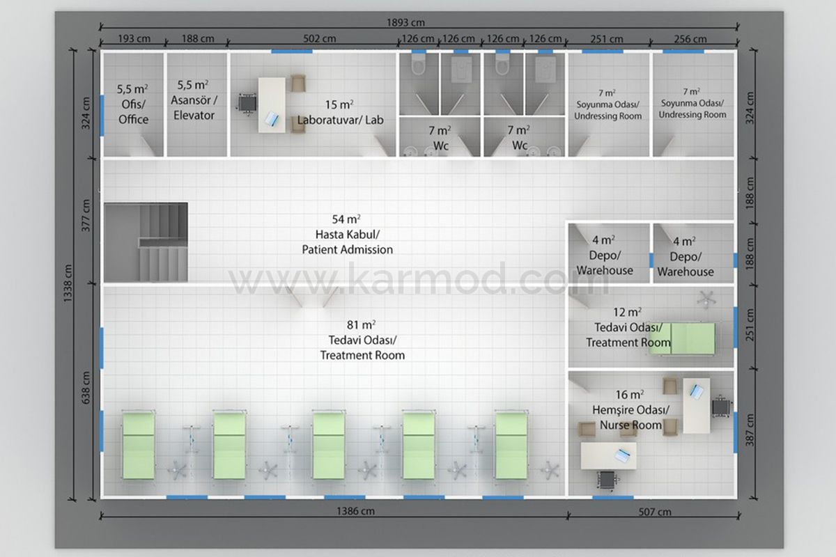 Tıbbi klinikler acil ihtiyaç olmasından dolayı kısa sürede yapılması gereken bir yapıdır. Prefabrik yapılar kısa sürede teslim edilmesi ile tıbbi klinikler için uygun olan bir yapıdır. Her detayı özenle hazırlanan bu prefabrik yapılar son teknoloji ürünler ve alanında uzman kişiler tarafından hazırlanıyor. Tıbbi kliniklerin yapımına başlanması için mutlaka bir proje hazırlanması gerekir. Bu proje aşamasının her detayında aktif olarak rol alacağınızdan dolayı kliniğe eklemek istediğiniz ekstra detaylar var ise ekleyebilirsiniz. Prefabrik tıbbi klinikler rahat bir kullanım sağlaması açısından yaklaşık 100 ila 200 metrekare arasında tercih ediliyor. Büyük ve geniş bir yapıya sahip olan tıbbi klinikler her noktaya kurulum yapılabiliyor. Türkiye’nin dört bir yanında kullanılan prefabrik tıbbi klinikler oldukça şık ve portatif yapısı ile kullanıcılara sunuluyor. Pratik, kolay kurulum, 5 iş günü içerisinde teslim edilebilmesi avantajı ile özellikle köy gibi alanlarda sıklıkla kullanılıyor. Her yönü ile avantaj sağlayan prefabrik yapılar istenilen boy ve ölçülerde tasarlanabilmektedir. Sizler de ihtiyacınıza uygun olan tıbbi klinikleri tercih ederek yaptırabilirsiniz.