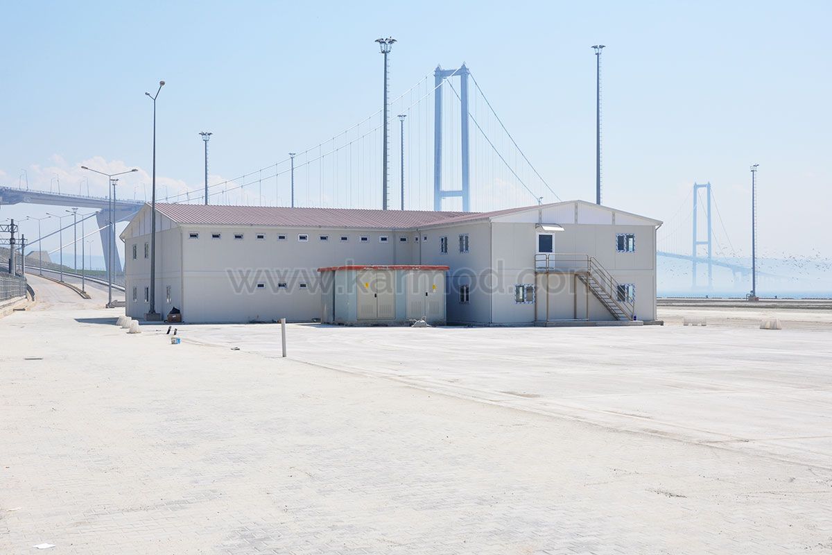 Türkiye sanayi üretiminin yüzde 51’inin gerçekleştirildiği bölgede lojistikte önemli bir işleve sahip olan Beldeport limanının ofis binası Karmod uzmanlığıyla inşa edildi. Limanın tüm yönetim hizmetlerinin yürütüldüğü prefabrik ofis binası 24 gün gibi kısa bir zaman diliminde inşa edilerek teslim edildi. 864 m2 büyüklüğe sahip iki katlı ofis binası panel sistem prefabrik yapı modeliyle inşa edildi. 149.000 m2 büyüklükteki liman sahasına hakim konumdaki beldeport liman yönetim ofisi Osmangazi Köprüsü manzarasıyla da bütünleşen nezih çalışma ortamına sahip.