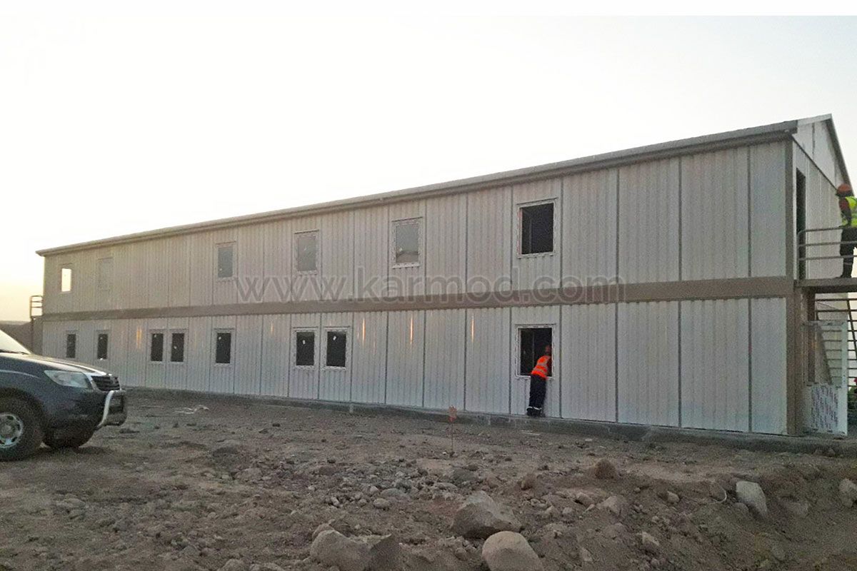 Şantiye bina kullanım şartları ve iklim özellikleri dikkate alınarak Karmod teknik ofisinde projelendirilen yapıda müşterimize sac panel sistem prefabrik yapı modeli önerildi. Prefabrik ofis projesinin müşteri onayı sonrası üretimine başlandı. Prefabrik ofis yapısında kullanılacak duvar panelleri, çatı makasları ve örtüleri, pvc pencere ve panel sistem kapıları, elektrik ve su tesisat malzemeleri, aydınlatma armatürleri, su armatürleri ve vitrifiye ekipmanları, iç ve dış boyası ile gerekli tüm yapı malzemeleri Karmod tesislerinde hazırlanarak demonte halde proje sahasına gönderildi. Prefabrik ofis yapılarımız Karmod süpervizörleri öncülüğünde yerel çalışanlarca sağlanan iş gücü desteğiyle kullanıma hazır kurulum yapıldı.