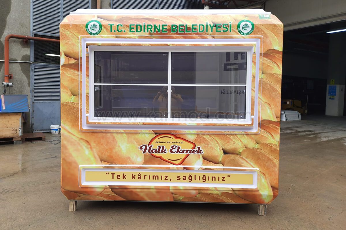 Karmod Kabin, Halk Ekmek Satış Büfelerinde en çok tercih edilen marka olma konumunu sürdürüyor. Son olarak Edirne Belediyesi hizmete aldığı Halk Ekmek Satış noktalarında Karmod Kabin ürünlerini tercih etti.