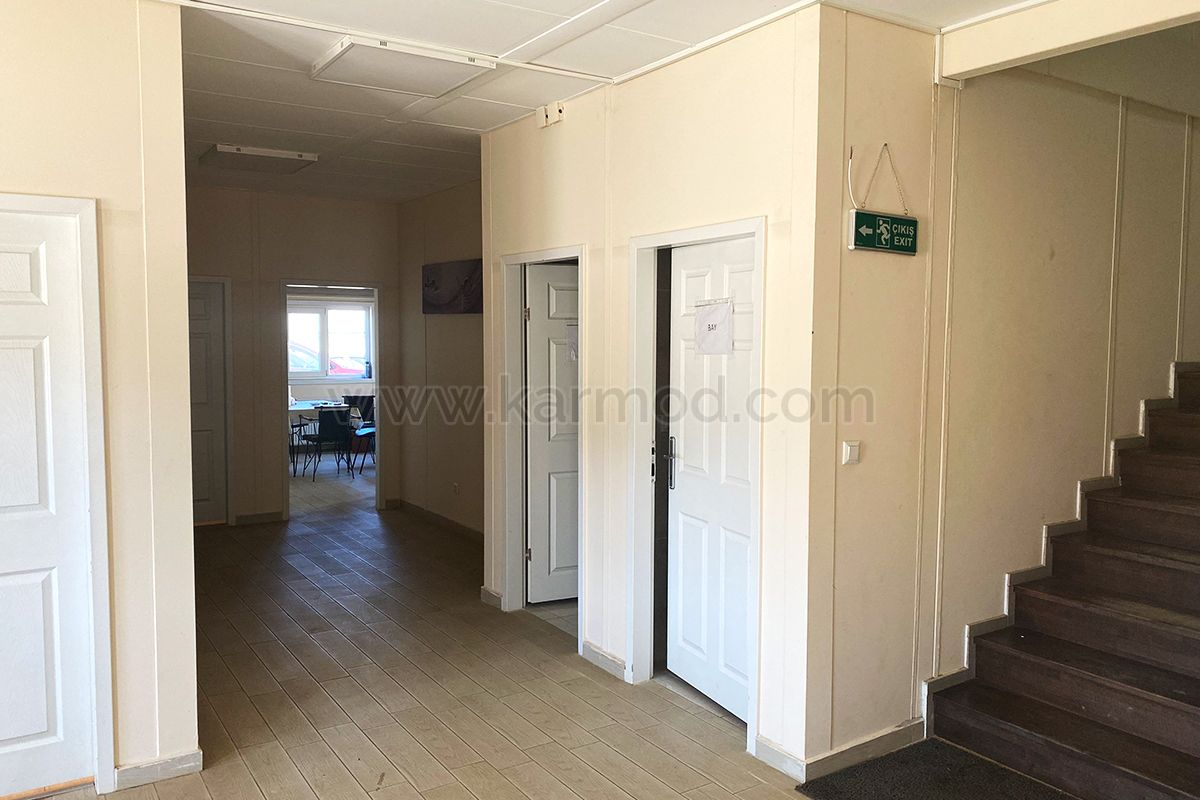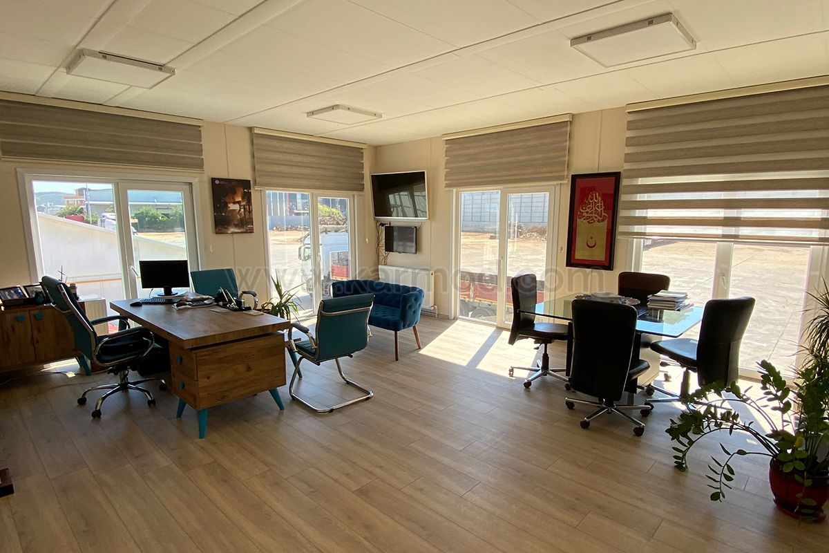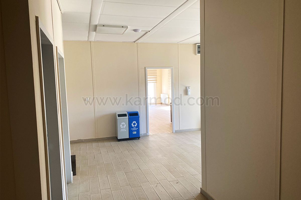Tesis içerisinde demir malzeme kesme, bükme, şekillendirme, eritme, soğutma, kırma ve doldurma gibi bir çok aşamadan geçiriliyor. Bu nedenle fabrika içi sert demir şekillendirmesinde gürültülü bir ortama sahip oluyor. Ana bina içerisinde oluşturulacak yönetim ve çalışma ofis binası işe odaklanma açısından çok uygun bulunmadı. Ana fabrika binasının hemen yanında Karmod uzmanlığıyla yönetim ve çalışma ofis binası projelendirildi. Prefabrik yapı modeliyle iki katlı olarak projelendirilen ofis binası 418 m2 büyüklüğe sahip. İki katlı planda hazırlandı. Giriş katında genişçe bir karşılama salonuyla birlikte finans, muhasebe ve satış ekiplerinin odaları yer alıyor. Bu katta mutfak ve tuvalet alanları da bulunuyor. Prefabrik ofisin üst katında ise yönetici odasıyla birlikte toplantı salonu yer alıyor.