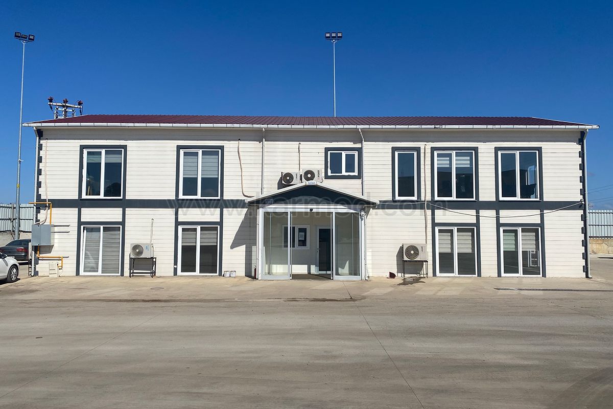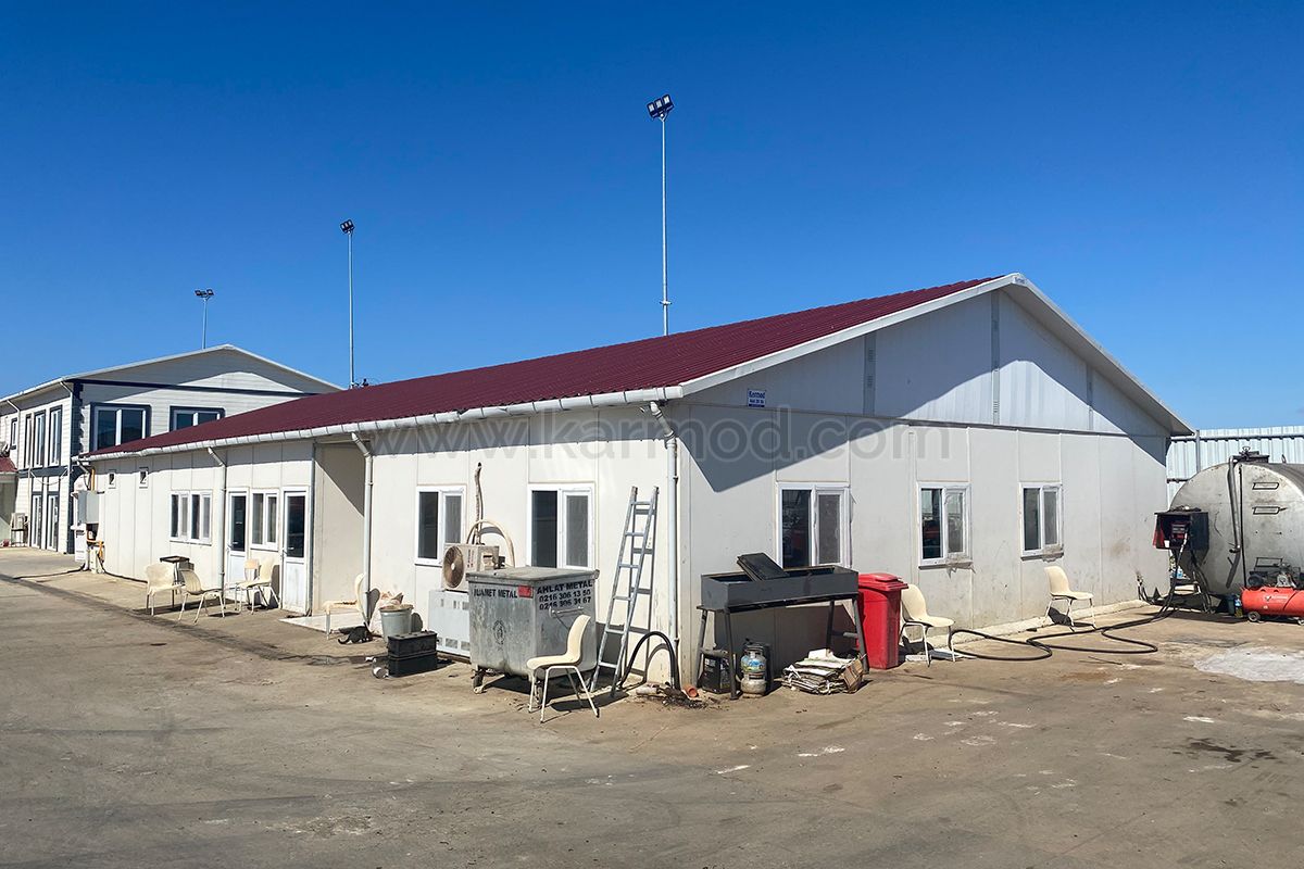 İlamet Metal ofis binası Karmod’un modern üretim tesislerinde kısa zamanda imal edildi. Karmod’un tüm yapılarında olduğu gibi proje kapsamında üretilen prefabrik ofis binası kaynaksız cıvata somunlu teknoloji kullanılarak hazırlandı. Duvardan çatıya, kapıdan pencereye, elektrik ve su tesisat malzemelerine kadar fabrikada hazırlanan ofis yapısı kurulum yapılacağı İlamet Metal tesislerine sevk edildi. Çift katlı ofis binasıyla birlikte tek katlı yemekhane binasının da bulunduğu toplam 664 m2 kapalı alana sahip iki yapı 18 gün gibi kısa bir zamanda montajlanarak teslim edildi.