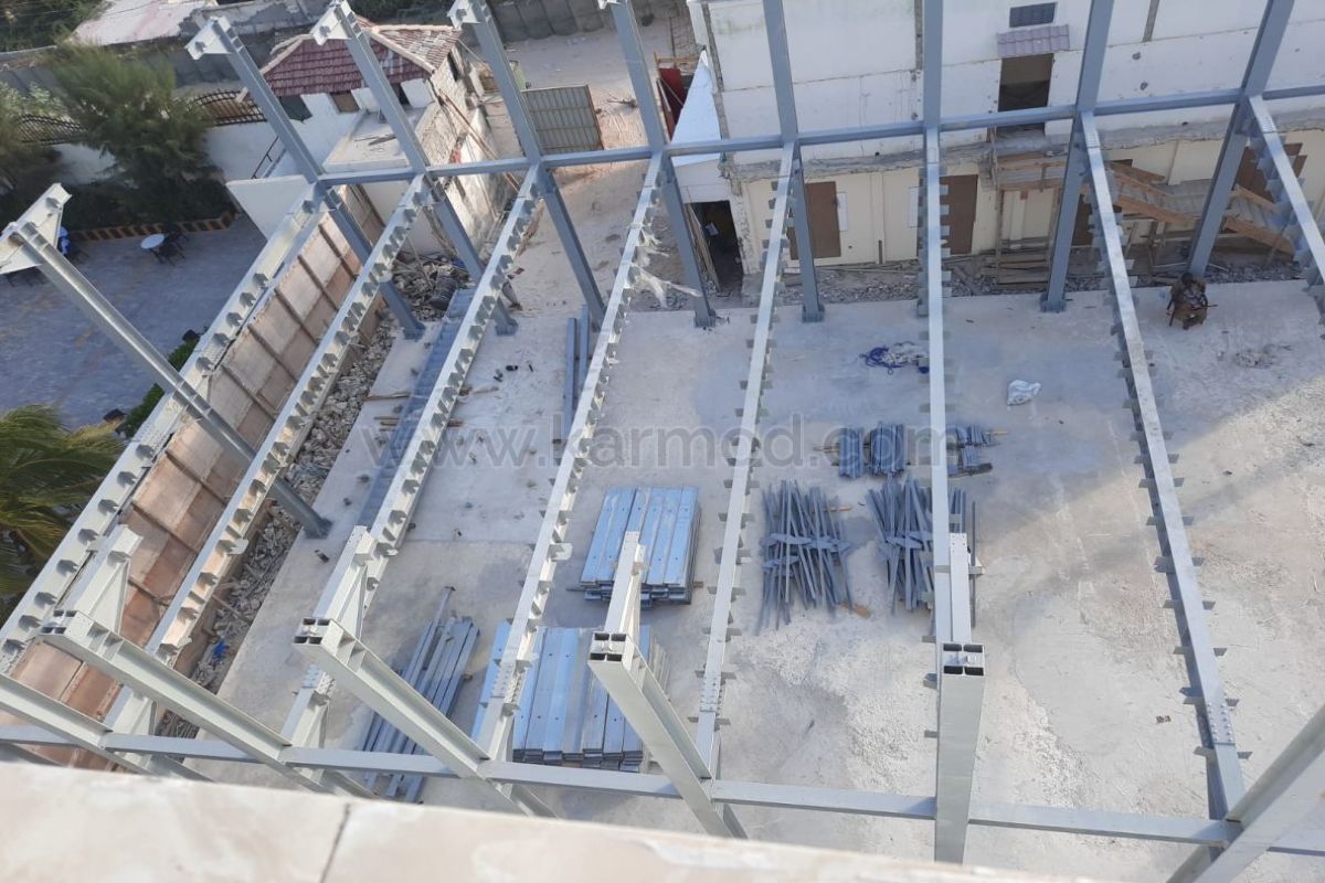 Karmod’un modern üretim tesislerinde yüksek yapı güvenliğinde konvansiyonel çelik yapı sisteminde demonte olarak hazırlanan yapı deniz yolu taşımacılığı ile Mogadişu’ya sevk edildi. Karmod’un uzman kurulum ekiplerince iki katlı 782 metrekare büyüklükteki yapı sadece 60 günde kurulum yapılarak teslim edildi.