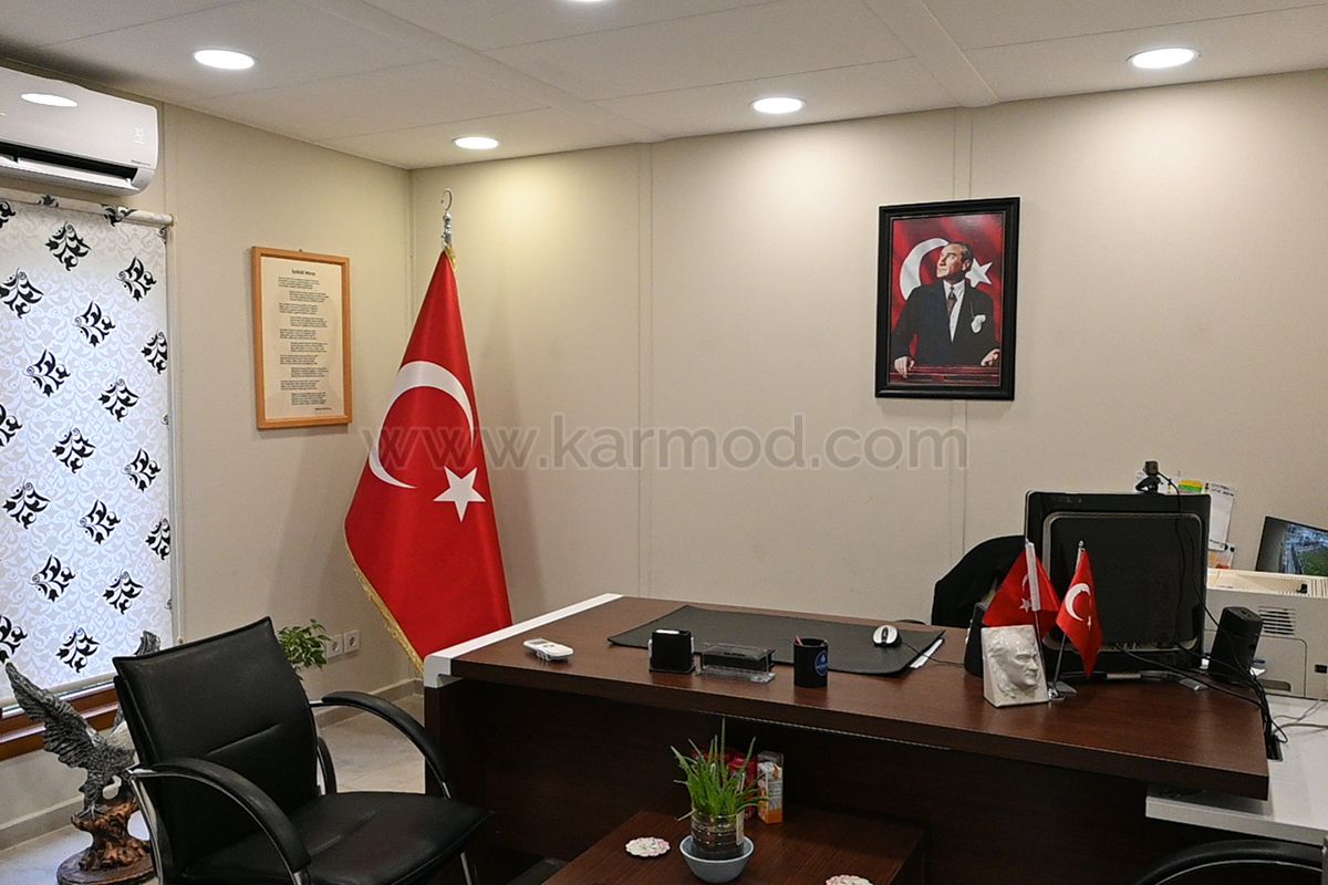 Muhtarlık binasında tasarımdan üretime, montajdan boyaya Karmod uzmanlığı ortaya konuldu. Yapı projesi muhtarlık çalışanlarının ihtiyaçlarını en iyi şekilde karşılayacak ergonomide Karmod teknik ofisince özel yazılım program kullanımıyla gerçekleştirildi. Tasarım esnasında yapı güvenliği statik hesaplamaları da tamamlanan bina üretime hazır hale getirildi. Prefabrik muhtarlık binasının üretimi Karmod modern tesislerde yeni teknoloji makine ve ekipman kullanımıyla gerçekleştirildi. 56 m2 binanın ön üretimi aynı gün içerisinde tamamlanarak sevke hazır hale getirildi. Binada kaynaksız yapı teknolojisi kullanılarak ön üretim yapıldı. Ön üretim modelinin temel birleşenleri cıvata somun ve geçmeli sistemden oluşuyor. Binanın yapı malzemeleri ve üretimi fabrika tesislerinde gerçekleştirildi. Bir yandan duvar ve çatı birleşenleri çelik sistem taşıyıcılar kullanımıyla üretilirken diğer yandan kapı ve pencereler hazırlandı. Elektrik ve su tesisat malzemeleri, yalıtım malzemeleri ve özel kaplamalar, çatı örtü malzemeleri boyaya kadar üretilen bina sevke hazır hale getirildi.
