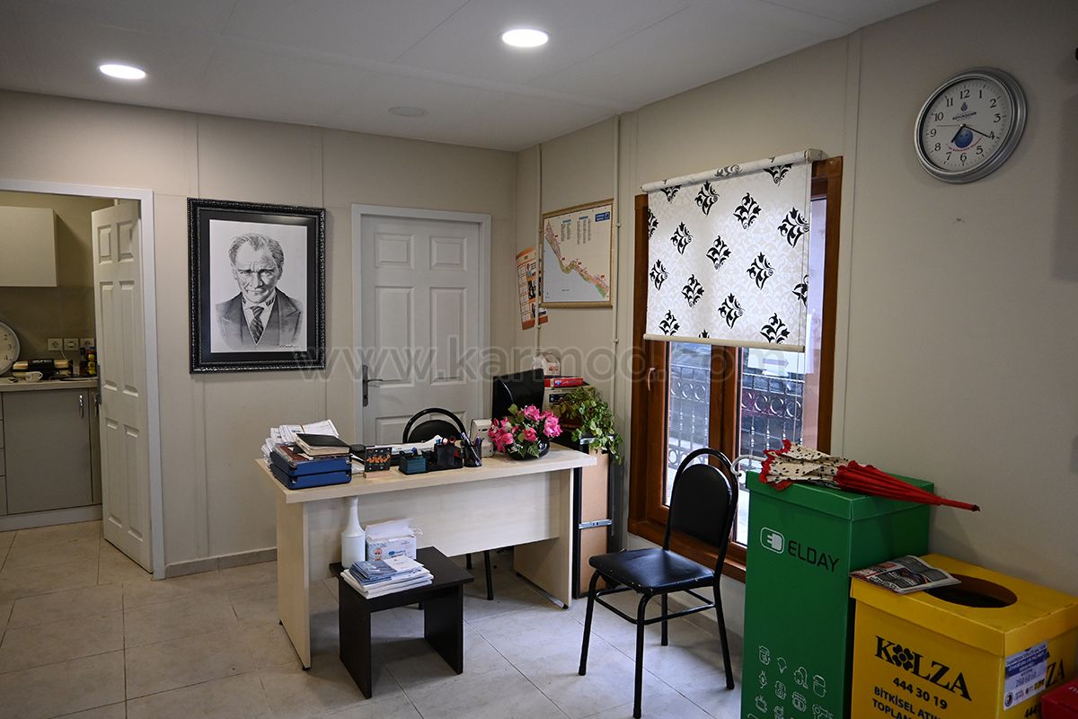 Bina kullanım ergonomisiyle de öne çıkıyor. Çelik sistem ana kapıdan içeri girildiğinde genişçe bir kabul salonu yer alıyor. Burada muhtarlığa gelen vatandaşlara gerekli hizmetler veriliyor. Arka kısımda muhtara ait bir makam odası bulunuyor. Yan kısımda da mutfak yer alıyor.