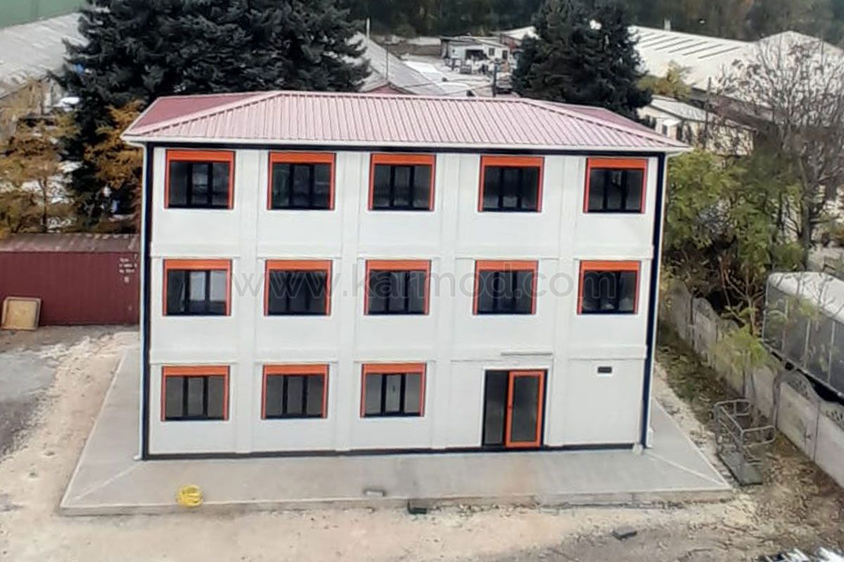 222 m2 büyüklüğe sahip konteyner ofis binası Karmod Teknik Ofisinde projelendirildi. Projenin üretimi 15 adet demonte konteyner ünitesiyle tamamlandı. Bu ünitelerden 12 adeti 230x595 ölçülerinde, 3 adeti de 300x600 ebatlarında üretildi.