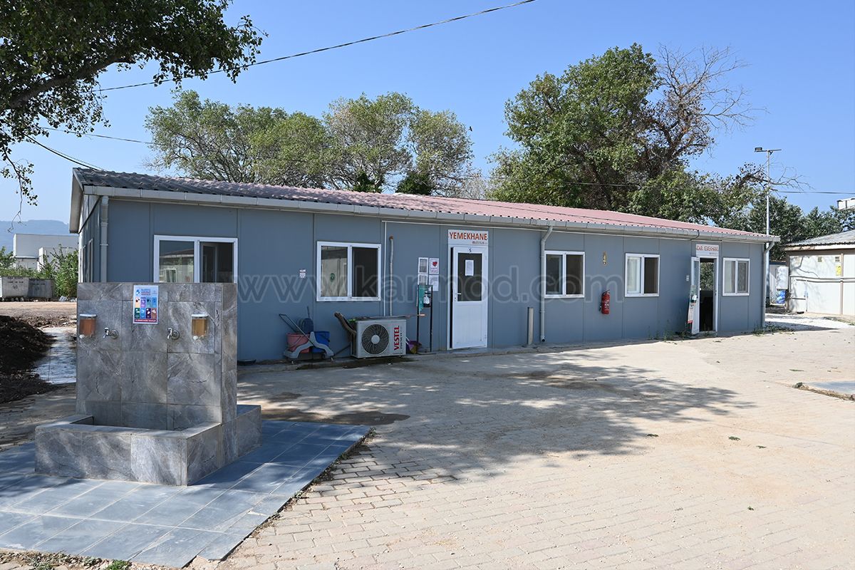 Prefabrik yapı sektöründeki uzmanlığı ile Karmod, Türkiye’nin marka projelerinin şantiye yapı tercihi olmayı sürdürüyor. Hızlı kurulum özelliğindeki güvenli yapılarımızla Türkiye’nin otomobili TOGG fabrika yerleşkesinde bir projeye daha imza attık. TOGG Gemlik tesislerinde gerçekleştirilen bina projeyi yemekhane yapısını içeriyor. Aydınlar İnşaat adına yerleşkede inşa edilen yemekhane binası sadece 12 günde tamamlanarak TOGG fabrika inşaatında görev alanların hizmetine sunuldu. 163 m2 büyüklüğe sahip prefabrik yemekhane binasında aynı anda 100 kişi yemek yiyebiliyor. Karmod proje ofisince müşteri talepleri dikkate alınarak tasarlanan yemekhane binası üç ayrı bölmeden oluşuyor. Bölümle arasında mutfak alanıyla birlikte biri genel personel diğeri yöneticiler olmak üzere iki ayrı yemek salonu bulunuyor. Projede mutfak alanı salonlar arasına yerleştirilmiş durumda. Ayrı girişi bulunan mutfağın çift yönlü bankosunda her iki salona aynı anda ayrı ayrı yemek servisi yapılabiliyor.