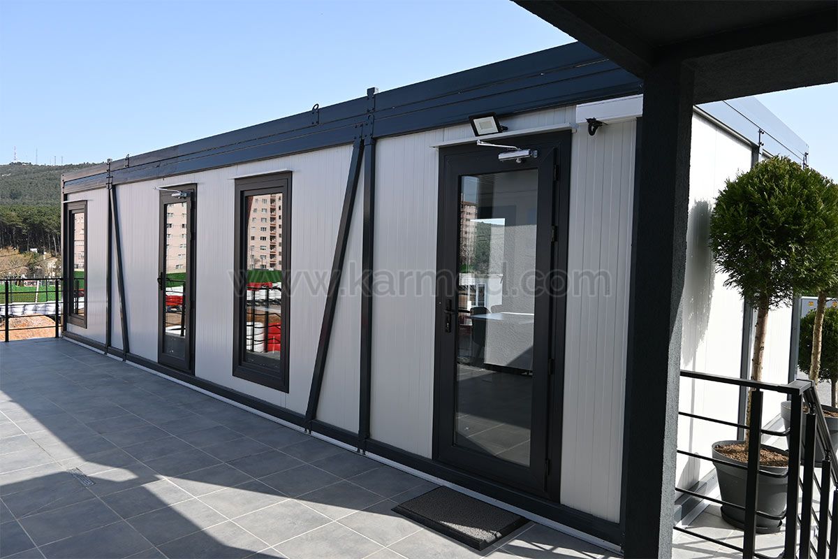 114 m² O contentor-cafetaria torna o serviço de restauração mais eficaz e torna o trabalho mais eficiente. melhora a satisfação dos empregados nas suas instalações e maximiza a sua experiência gastronómica. maximiza. Sabor e praticidade, este contentor pode oferecer