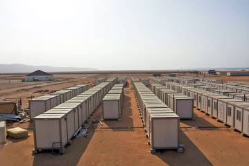 Os estaleiros de obra instalados pela Karmod no projeto de exploração de bauxite na Guiana incluem escritórios, laboratórios, dormitórios, refeitórios e unidades de casa de banho.