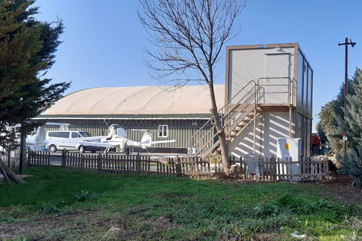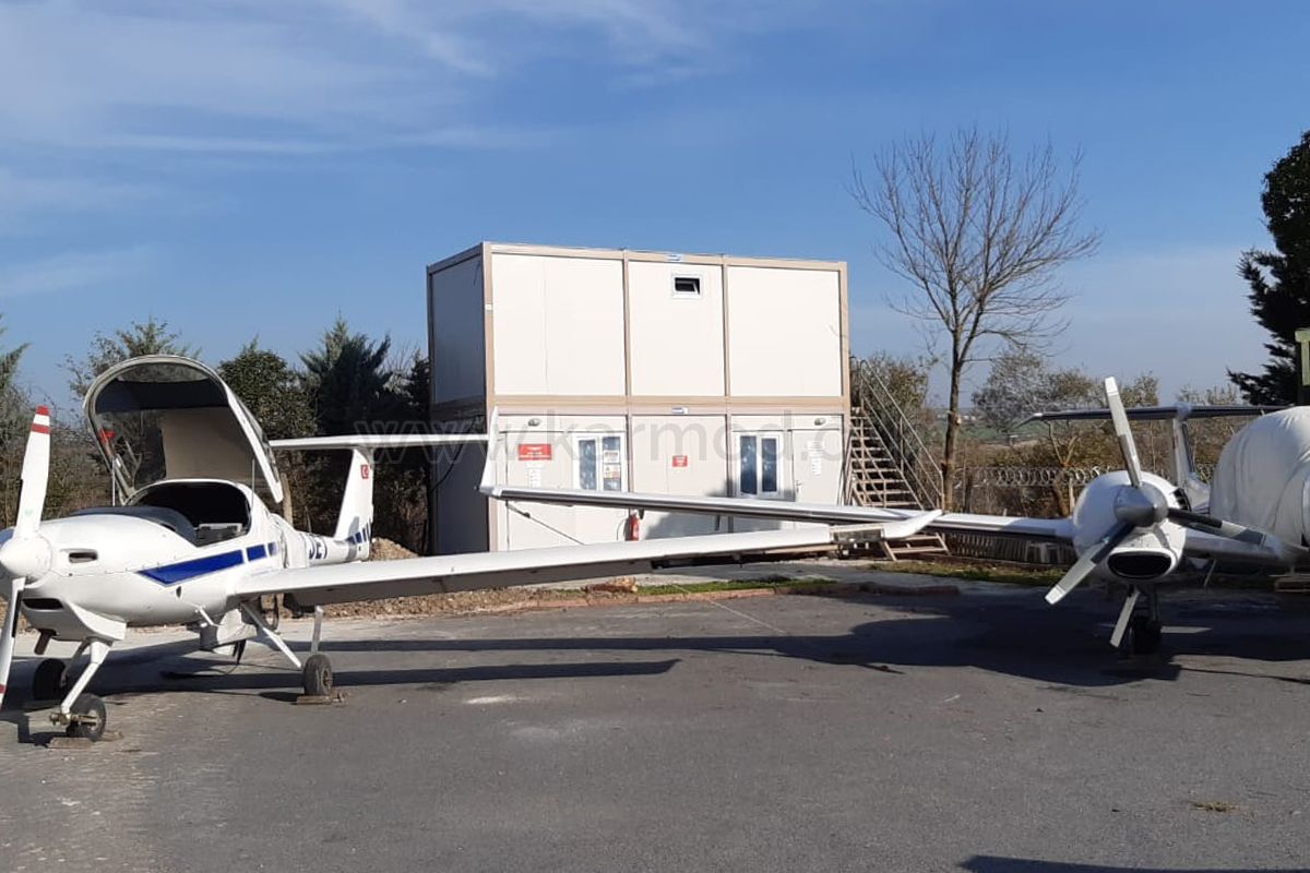 Construímos um escritórios em contentor de painel sanduíche para a escola de piloto de Ayjet, que treina futuros candidatos a pilotos com o slogan "O endereço certo no treinamento de voo". O escritório estabelecido no campus da empresa localizado no Aeroporto de Istambul Çatalca Hezarfen será usado para serviços de treinamento. Para o projeto foram utilizados dois contentores acoplados de 3x7mts dando um total de 42 metros de área. Duas unidades separadas, prontas para uso na fábrica, foram carregadas em um único caminhão e enviadas para o pátio do aeroporto de Hezarfen. As unidades, que foram descarregadas do veículo com o auxílio de um guindaste, foram colocadas umas sobre as outras e prontas para uso em cerca de duas horas.