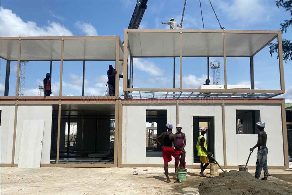Outra vantagem importante do sistema aparafusado é que ele oferece a oportunidade de transportar facilmente a estrutura produzida em um país estrangeiro como a Turquia para a Nigéria. Com o sistema do contentor completamente desmontável da Karmod, o limite de tamanho de unidade de 230x595cm para caber em um contêiner marítimo também foi excedido. O requisito de unidade de encadernação padrão de 14 m2 foi removido e o contentor de nova geração foi aumentado para dimensões de 21, 27 e até 36 m2.