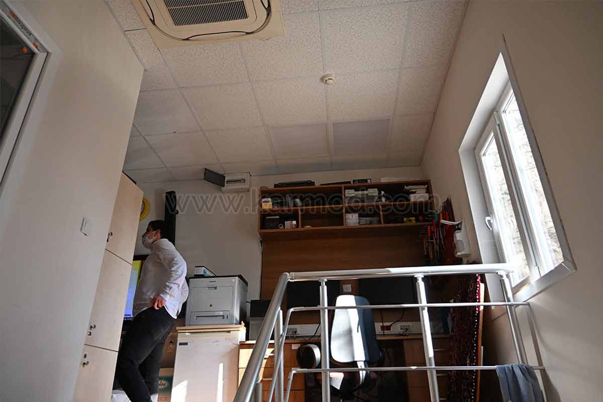 Uma entrada frontal estreita foi dada ao prédio de TI. No rés-do-chão, existem duas secções distintas onde se faz a transição de divisão para divisão. A parte da frente dos quartos é reservada para a sala de estudo. A sala dos fundos é dedicada ao uso da sala do sistema. Na sala de sistemas, foram instalados sistemas de ar condicionado com instalações especiais para não serem afetados pelas condições climáticas de verão e inverno. Em ambas as salas, 4 luminárias separadas foram colocadas no teto. Do térreo ao andar superior, é possível chegar ao andar superior usando a escada revestida em madeira do sistema de aço projetada por dentro. Este andar foi pensado como duas salas que se interligam novamente. Essas salas servem como salas de estudo para o pessoal que trabalha na unidade de TI.