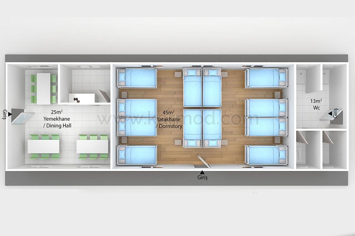 Компания Кармод прямой производитель сборных общежитий из сендвич панелей. Внедренные нашими специалистами собственные разработки в наше высокотехнологичное производство позволили нам максимально снизить себестоимость зданий. Несмотря на удивительно низкие цены, мы не изменяем своему основному принципу: высокое качество и мировые стандарты. Мы дорожим своим брендом с мировым именем, поэтому предлагаем нашим клиентам только самый качественный продукт. Модульные общежития не уступают капитальным по своей функциональности и комфорту, но превосходят их по таким параметрам, как: полная мобильность, возможность разобрать, перевезти и собрать на новом месте; долговечность, прочность, стойкость к землетрясениям, пожаробезопасность, экологическая безопасность; теплоизоляция; гибкость, возможность изменения планировки и конфигурации.