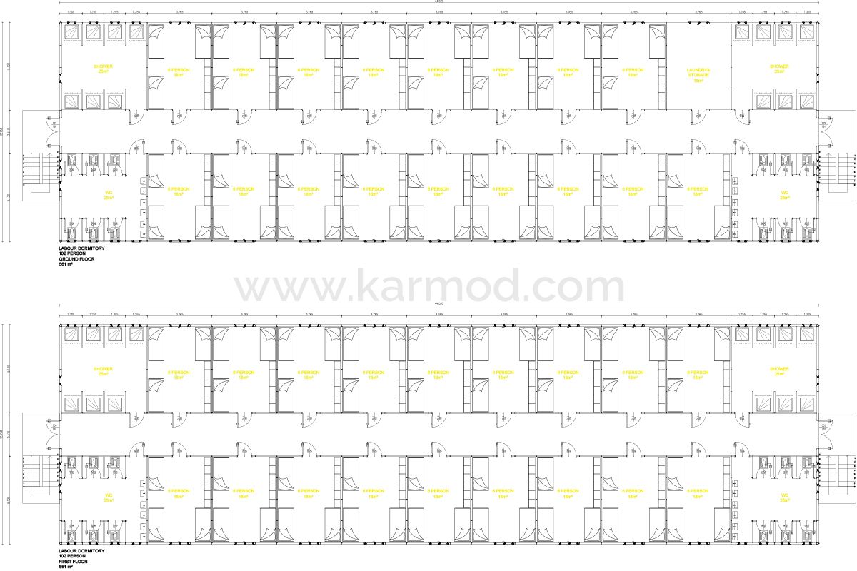 Общежитие на 210 человек, произведенное Кармодом, ориентировано на комфорт и безопасность ваших рабочих. Внутреннее пространство разработано с учетом потребностей в личном пространстве, каждая спальная комната оснащена эргономичной и функциональной мебелью. Безопасность обеспечена на высшем уровне по всему общежитию, стандартно предлагаются системы пожарной сигнализации, детекторы дыма и аварийные выходы. Кроме того, эту модель обогатили дополнительные удобства, такие как социальные зоны, кухни и комнаты для отдыха, что позволяет сотрудникам эффективно и комфортно проводить время вне работы. Общежитие Кармод не просто место для проживания, но и центр, удовлетворяющий социальные потребности сотрудников.