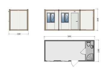 K2005: 1комн+душ+туалет, Упакованный Контейнер 2,3х6 м