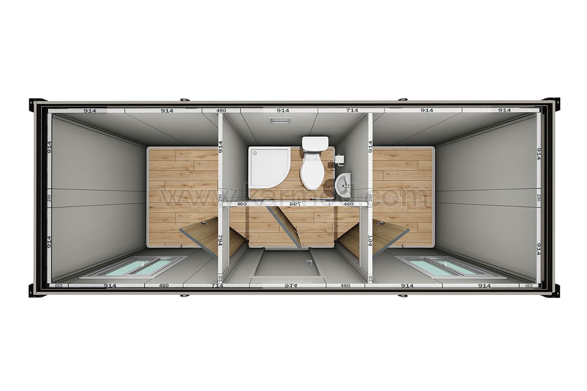 K3005: 2комн+душ+туалет, Упакованный Контейнер - 2,3х7 м