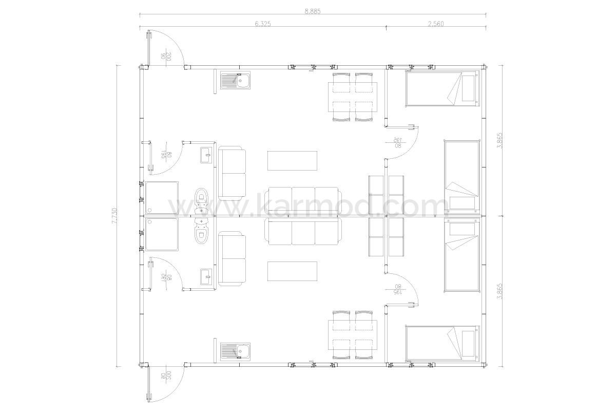 Кармод предлагает доступное и высококачественное решение для нужд беженцев и чрезвычайного проживания с Двойным Семейным Префабрикованным Домом для Беженцев площадью 69 м². Эти инновационные префабрикованные дома обеспечивают быстрое и безопасное жилье, при этом сохраняя стоимостную эффективность на первом месте. Эта модель Кармод оснащена высокоизоляционными характеристиками и энергоэффективностью, предлагая пользователям комфортабельное проживание в любое время года. Это двойное жилищное решение идеально подходит для государственных учреждений, благотворительных организаций и частных лиц, ищущих экономичные решения, и выделяется качеством Кармод.
