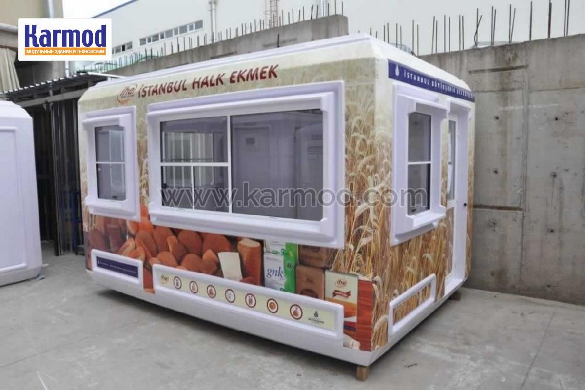 Постройка торгового назначения по быстровозводимой технологии — это наиболее доступный в ценовом плане способ получить помещение для ведения бизнеса. Модульные киоски принципиально отличаются от объектов капитального строительства, но обладают теми же характеристиками: надежность, безопасность, комфорт для персонала и покупателей, хорошее вентилирование и сохранение теплового баланса в любое время года. Также преимуществом быстровозводимых киосков является скорость их постройки: от передачи заказа и сборки модуля на производстве .