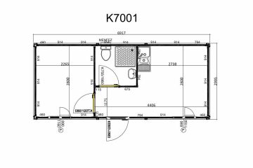 Модель сэндвич панельного контейнера K 7001, 3х7 м состоит из двух комнат, одна из которых оснащена душевой, туалетом и кухонной мойкой. В контейнер встроено все электротехническое и сантехническое оборудование. Остается подвести только внешние коммуникации и запитать через точки подключения. Такой контейнер идеальный вариант для бюджетного временного жилья, где могут найти приют беженцы и переселенцы, строители на стройплощадке. Также используется как штаб или офис для прорабов и администраторов, как контора для любого учреждения, проходные, КПП, мобильные санблоки, пищеблоки, депо, хозблоки, здания из блок контейнеров, здания контейнерного типа и многое другое. Изготовление строительных вагончиков, производство вагончиков бытовок, как построить строительный вагончик все это вопросы специализации компании Кармод.