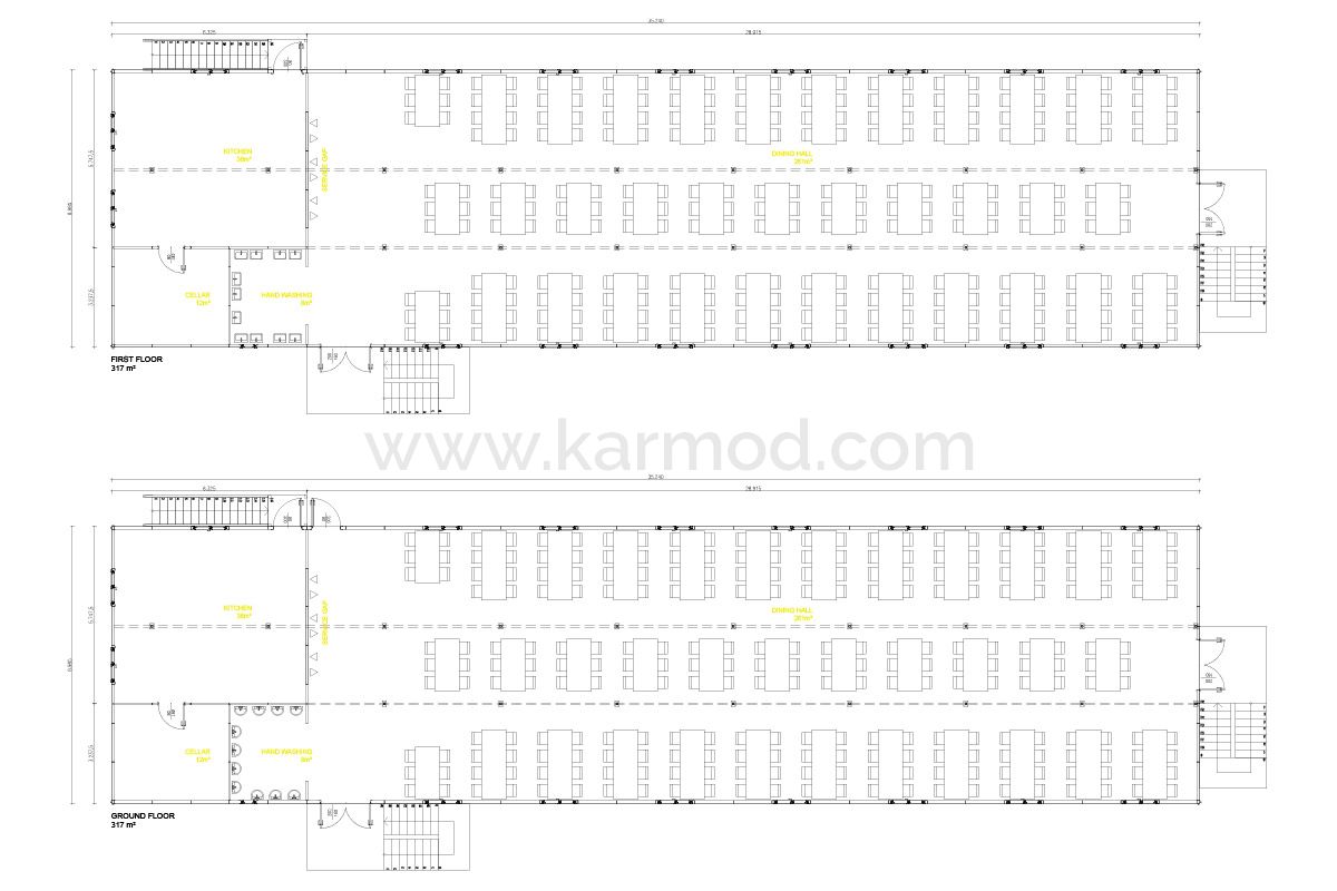 Кармод предлагает доступные и масштабные решения для столовой с 500-Местным Обеденным Залом площадью 634 м², идеально подходящим для крупных проектов и предприятий с большим количеством персонала. Этот модульный обеденный зал способен обслуживать большие группы и выделяется своей доступной стоимостью. Снабженный высокими изоляционными характеристиками для энергоэффективности, это сооружение снижает операционные расходы и обеспечивает удобную обеденную зону для сотрудников. Кармод эффективно и качественно удовлетворяет ваши потребности в столовой большой вместимости с экономичными решениями.