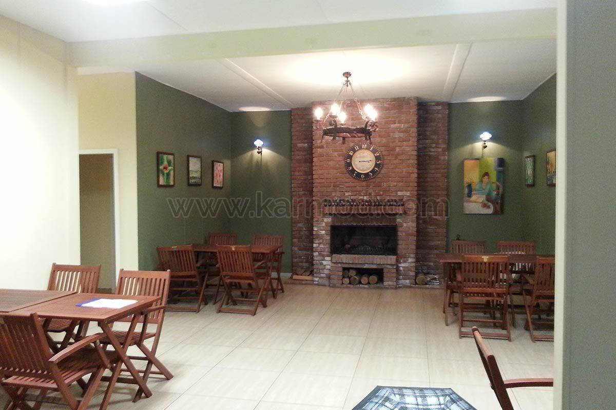 Декоративный камин и большие окна создают в помещении просторную и современную атмосферу. В здании комплекса также есть кафе, открытое для ежедневного посещения.