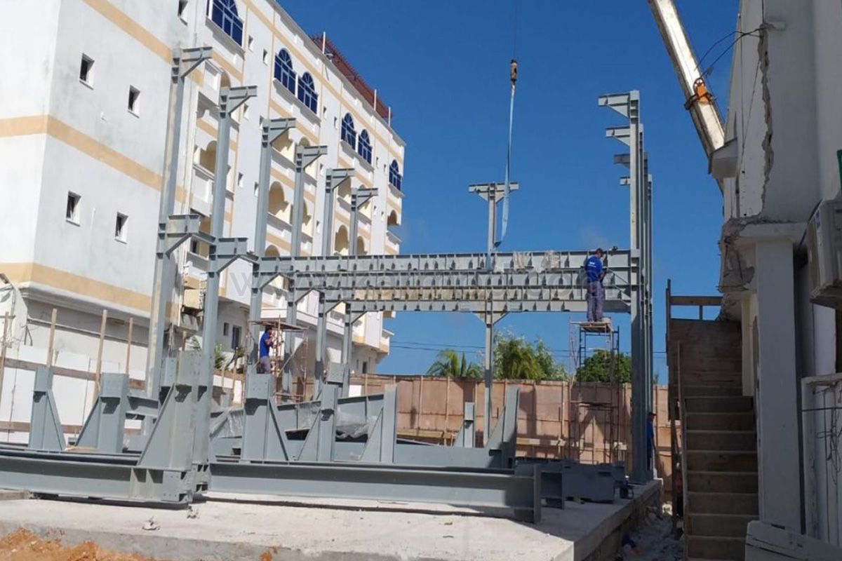 Мы построили двухэтажный конференц-зал при помощи нашей обычная тяжелая стальная конструкция в отеле Jazeera Palace в Восточной Африке на берегу Индийского океана в Могадишо, столице Сомали, всего за 60 дней. В отеле 85 роскошных номеров, где расположены посольства трех стран, а так же гостят дипломаты. Известный своей безопасностью отель так же предпочитают бизнесмены и представители международных неправительственных организаций.