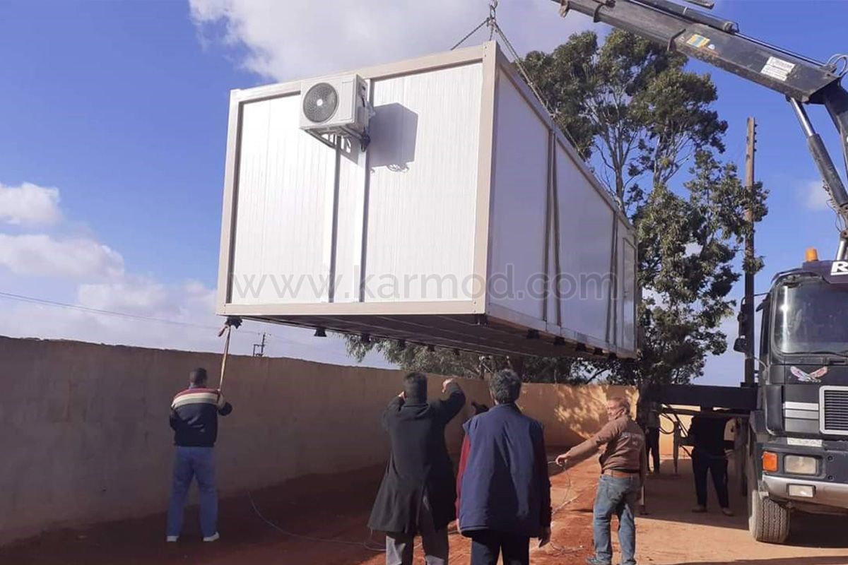 В рамках нашего проекта мобильной контейнерной школы в Ливии, 32 квадратных метра классных комнат 4х8 метров, каждая из которых изготовлена самостоятельно, были отправлены в страну по морю. Мобильные школы, которые были установлены на месте в короткие сроки с легкостью, обеспечиваемой демонтированной винтовой и вставной системой контейнера нового поколения Кармод, были доставлены в разные регионы страны автомобильным транспортом. Мобильная контейнерная школа, которую при помощи крана выгружали на территорию школы, сразу же приступила к работе. Благодаря комфорту и эргономике, обеспечиваемым системой сэндвич-панелей, наши контейнерные школьные здания соответствуют стандартам качества, которые обеспечат безопасную возможность образовательных услуг в течение многих лет.