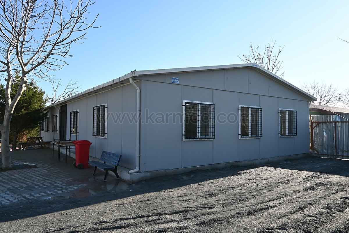 Модель сборного здания из панельных систем была использована при производстве офисного здания строительной площадки Акрос Стамбул. Производство здания, проект которого был подготовлен в техническом бюро Karmod, осуществлялось на современных линиях. Как общая особенность офисных зданий Karmod, производство было выполнено по технологии нового поколения без применения сварки. Таким образом, все высокооцинкованные стальные металлы защищены от риска ржавления, вызываемого сваркой. Наружные стеновые панели офисного здания, подготовленные в рамках проекта, были изготовлены толщиной 10 см, а толщина внутренних стен - 6 см. Конструкция, загруженная на один автомобиль от стен до крыши, от электроматериалов до материалов для монтажа водопровода и краски, была доставлена на строительную площадку. Процесс строительства офисного здания на месте, к монтажу которого бригады Karmod приступили в день завершения отгрузки, был завершен за восемь дней.
