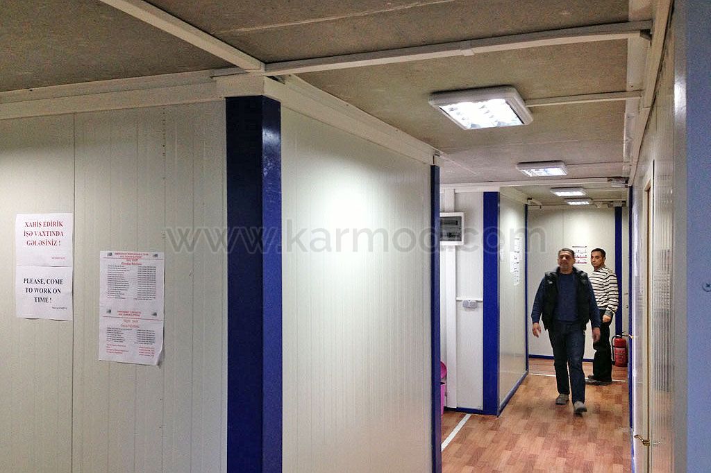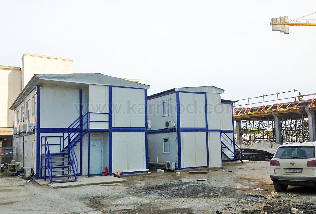 Здания стройплощадок AZ-BESIX, предварительно изготовленные на современных мощностях Karmod по винтовой и дюбельной системе с демонтированной моделью сборно-разборного контейнера из сэндвич-панелей с технологией несварной конструкции, имеют общую площадь закрытого использования 346 м2. Наши конструкции, подготовленные в виде сборно-разборных контейнеров, были отправлены в район строительства проекта SOFAZ TOWER автомобильным контейнерным транспортом. В день завершения логистики наши бригады приступили к монтажу на месте, и три контейнерных блока, каждый из которых имеет два этажа, были установлены в рамках проекта и сданы в эксплуатацию.