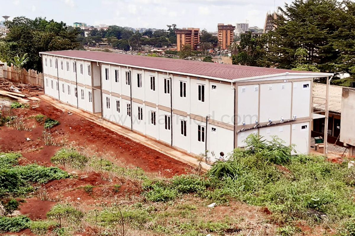 ЕНАМ мектеп жыйынтык проект эки катты жыйынтык контейнер модели аркылуу жасалды. Проект капталган 34 240x600 контейнер блоку Кармод модерн ималат жайларында тез дарыдалган жана морук контейнер курадуу Камерун досалык Дуала шаарындагы лиманга жана там жолу Баскент Яунде’ге жеткенди.