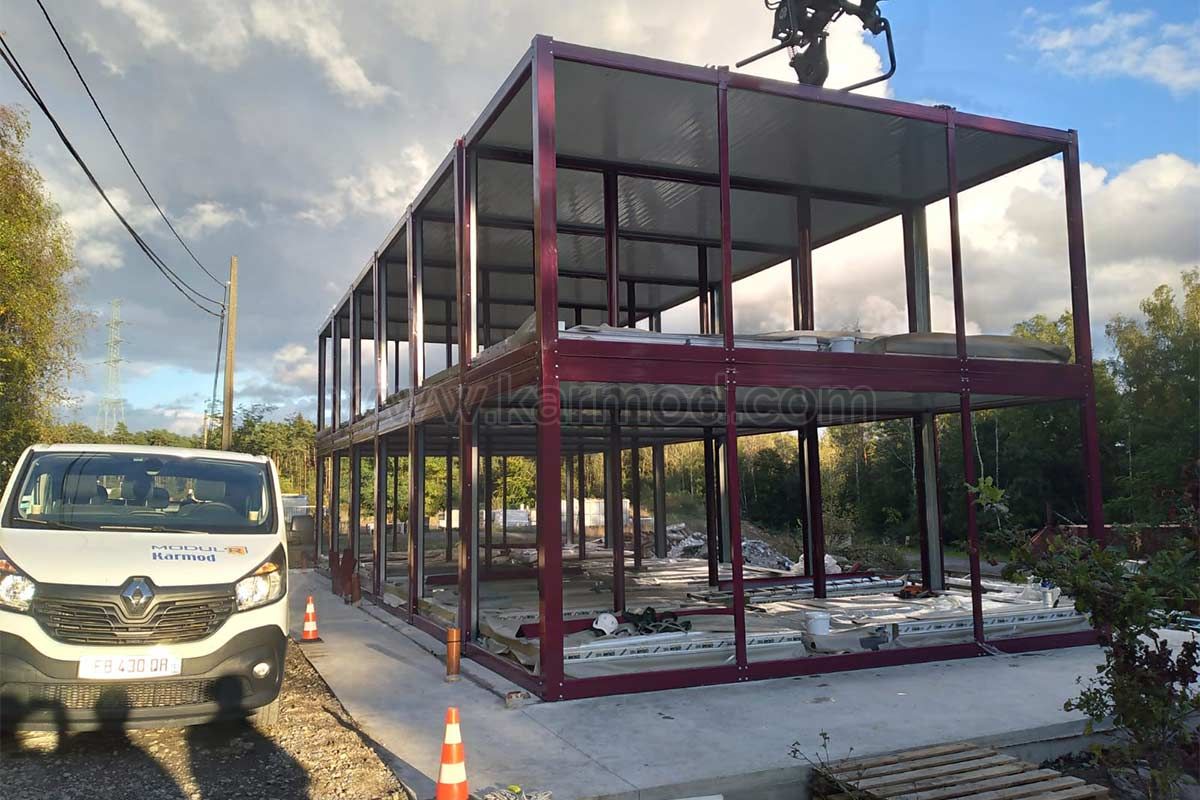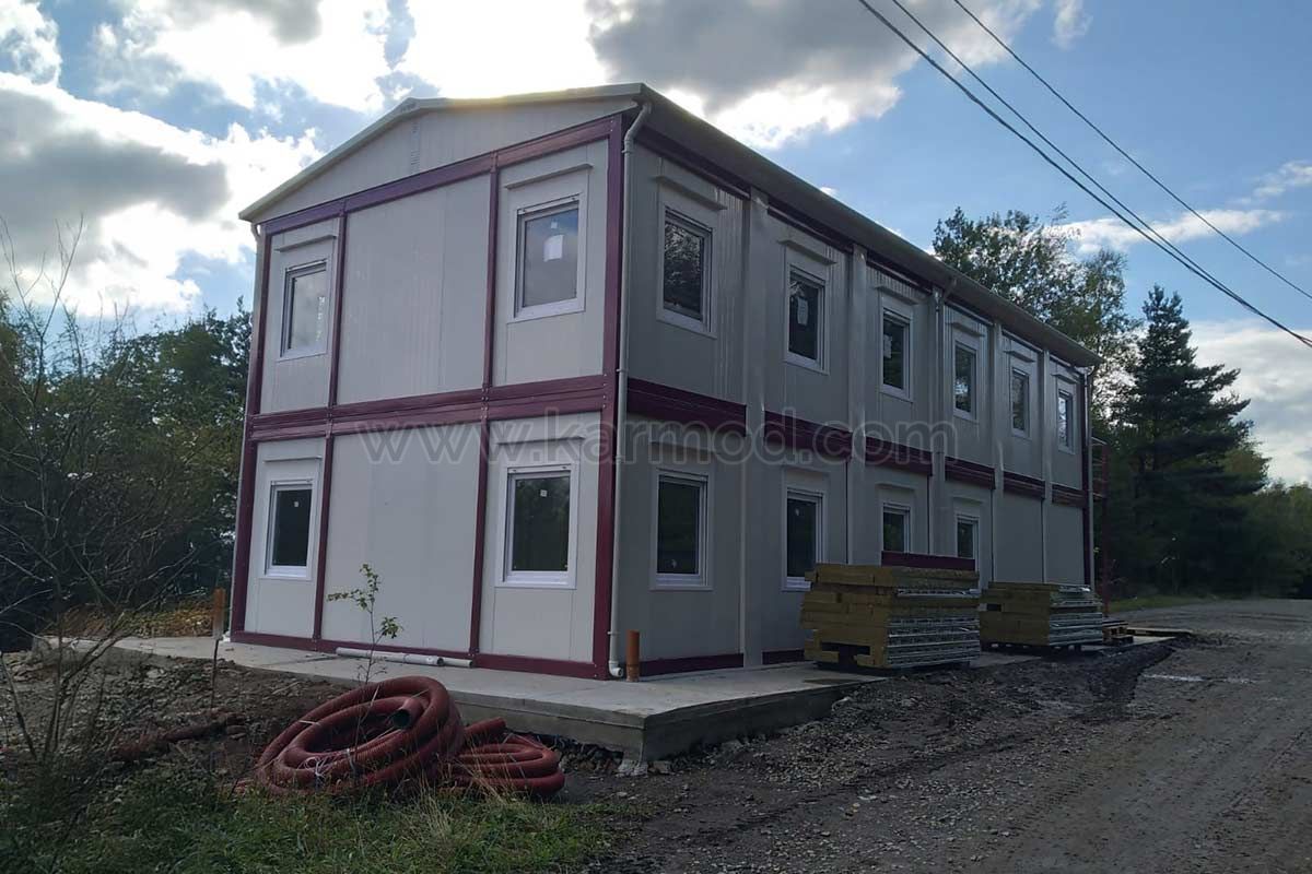 После утверждения проекта изготовление офисного здания, доставленного на производственные мощности Karmod, было завершено всего за 3 дня. Производство осуществлялось на контейнерных линиях нового поколения с использованием новых технологий. Готовые контейнеры размером 230х600 были погружены на грузовики и отправлены в соответствии с нормами автомобильных перевозок.