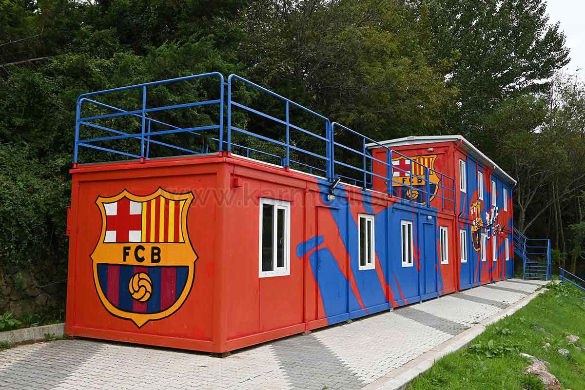 Балконная система также была применена в проекте здания, которое расположено с видом на поле, где проводятся футбольные тренировки. В передней части здания в два этажа были расположены в общей сложности 4 контейнера. Еще две контейнерные единицы разместили сзади в одноярусной комбинации. Верхушки двух одноэтажных блоков остались открытыми и устроены как балконы с балюстрадами. Эта часть получила доступ к парадному двухэтажному пространству. После установки здание, окрашенное в цвета футбольного клуба «Барселона», было введено в эксплуатацию в помещениях Каваджик академии.