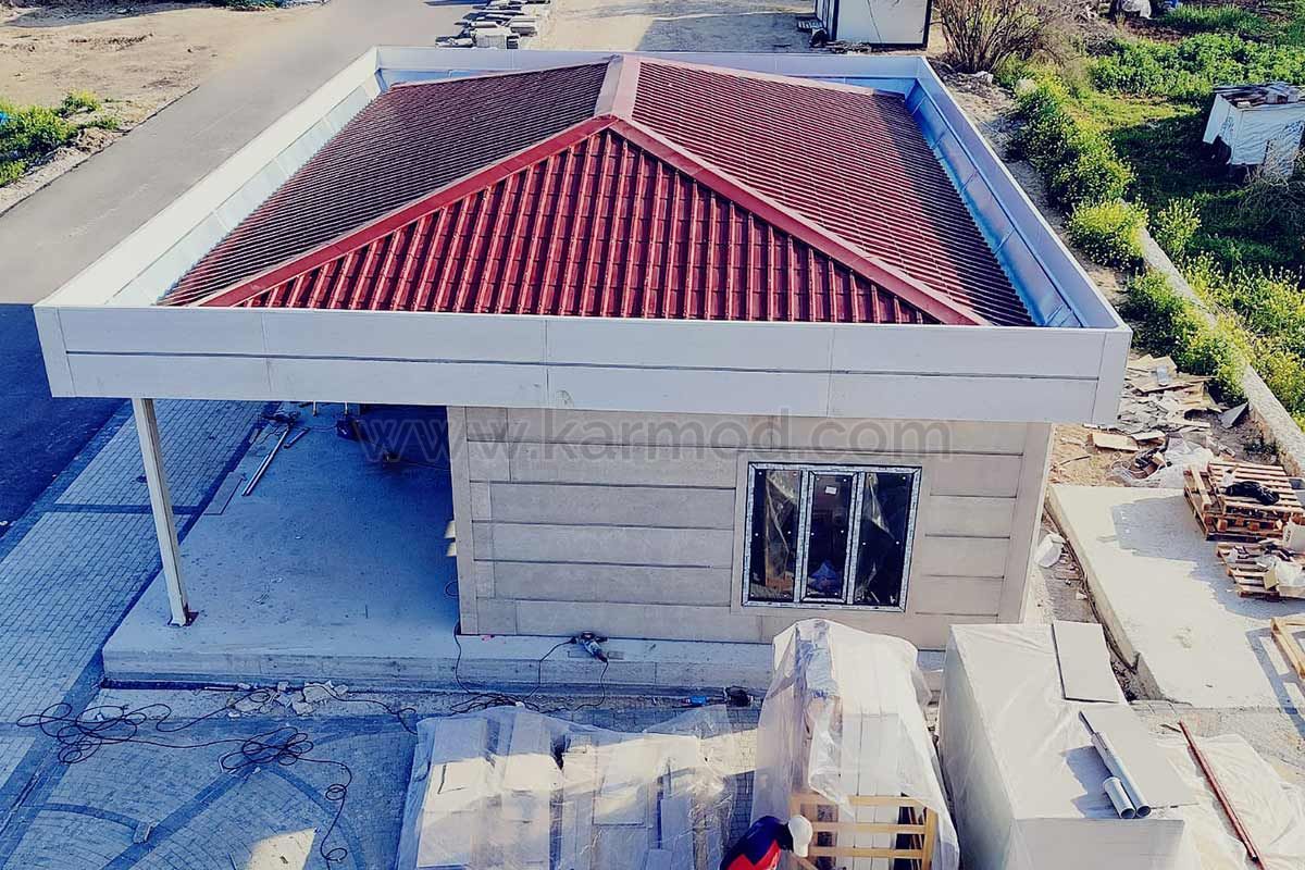 Как и компания Karmod steel house, мы разработали проект одноэтажного дома, который установили на Кипре. Крыша нашей модели дома 2+1 на вилле была изготовлена и применена в парапетной системе. Стеклянная фасадная система была применена на стенах в гостиной.
