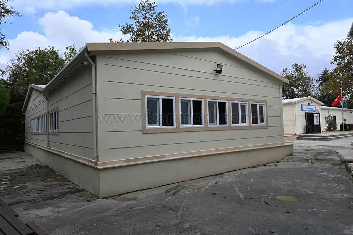 Сборные конструкции, отличающиеся безопасностью и долговечностью, в последние годы широко используются в учебных заведениях. Особенно при ликвидации острой нехватки школ и классных комнат сборная школа дает большое преимущество благодаря быстрому производству и строительным процессам. Монтаж начальной школы Тюркан Шорай площадью 697 м2, построенной с использованием модели сборного здания в Румелихисары, был завершен за 34 дня. Процесс предпроизводства здания школы, которое после утверждения проекта было запущено в производство на современных линиях на предприятиях Karmod, был завершен за 3 дня. В производстве использовалась технология сборного производства нового поколения, полностью состоящая из системы болт-гайка и дюбелей. Риски, связанные с традиционным применением сварки, остались позади благодаря инновационной системе. Готовое к производству здание было отправлено в сад школы в Сарыере, где оно будет установлено. Здание школы, которое начали собирать команды Karmod в тот же день, было завершено за короткое время - 34 дня - и передано на службу образования.