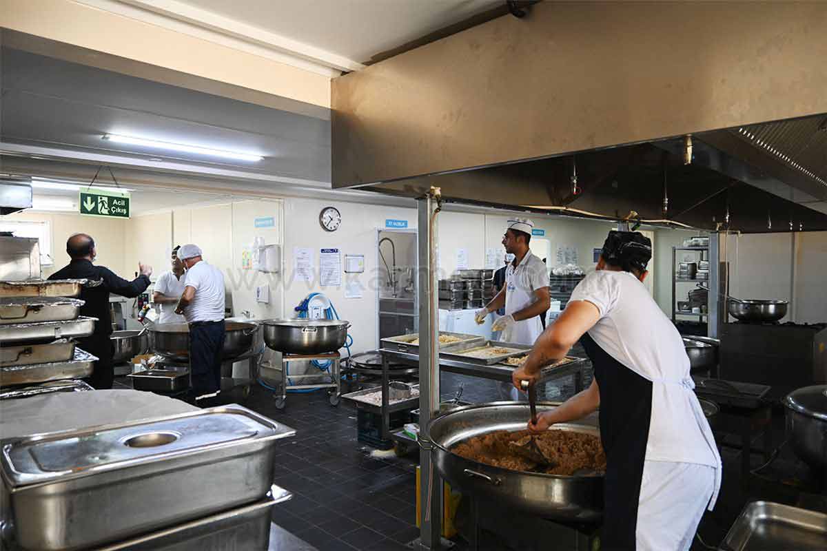В здании столовой готовят три горячих блюда для рабочих, мобилизованных на турецкий автомобильный завод. Внутри здания расположена большая кухонная секция. В этом отделении, имеющем специальную систему вентиляции, для рабочих готовятся вкусные блюда, которые готовят мастера. Этот участок также оснащен промышленным кухонным оборудованием. Помимо кухни, важная секция отведена под кладовую. Материалы, необходимые для составления ежедневного меню, закупаются заранее и хранятся в этой зоне. Здание имеет двойной вход. Входная дверь в кладовую остается широкой для движения тележек с поддонами. В боковой части здания находится офис управления. В этой секции есть комната руководителя и комната шеф-повара. Проход в зону приготовления пищи осуществляется с помощью турникетной системы, и только уполномоченному персоналу разрешается вход с использованием средств гигиены, таких как галоши.