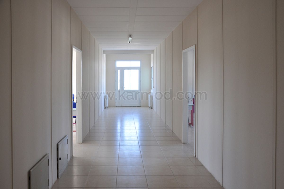 Сборное здание спортивного комплекса площадью 320 м² - это не только классическое здание клуба, но и комплексная структура с учебными классами. Помимо административных помещений, в здании есть 4 классные комнаты и 1 зал для карате. Раздевалки для спортсменов и душевые в туалетах - это еще одна часть здания. Спереди слева от входа находится большой зал-кафетерий.