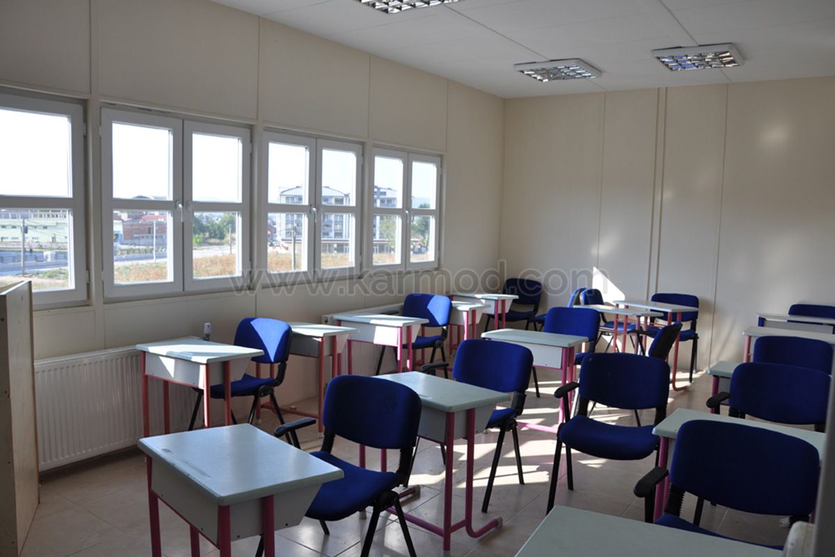 Сразу бросается в глаза эргономика использования здания, которая отражает многолетний опыт строительства спортивных объектов. Учебные классы были спланированы в соответствии со стандартами классных комнат. Высокие показатели теплоизоляции сборных зданий Karmod были доведены в этом проекте до еще более высокого уровня за счет дополнительных наружных фасадных работ.