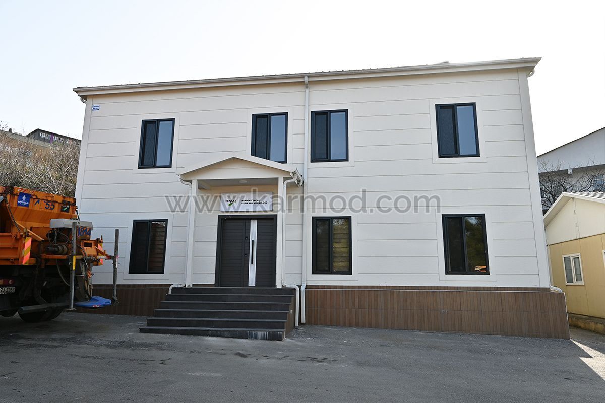 Мы построили стальное офисное здание для ISFALT (Istanbul Asfalt Fabrikaları Sanayi ve Ticaret AŞ), одного из филиалов столичного муниципалитета Стамбула. Здание, построенное на территории сервисного кампуса компании в Малтепе, служит Управлением сторонних приложений Анатолии. Стальное офисное здание, спроектированное как двухэтажное, имеет размер 294 м2. После утверждения проекта офисное здание, предварительная подготовка которого была завершена за 9 дней на современных объектах «Кармод», было отправлено в кампус учреждения в Малтепе для установки. Здание, строительство которого было начато профессиональными монтажными бригадами, было завершено в короткий срок 14 дней и сдано.