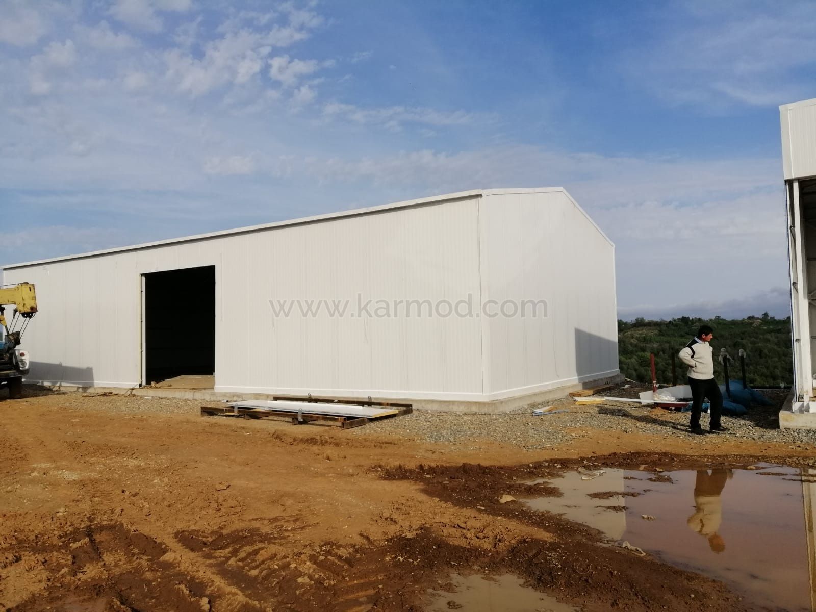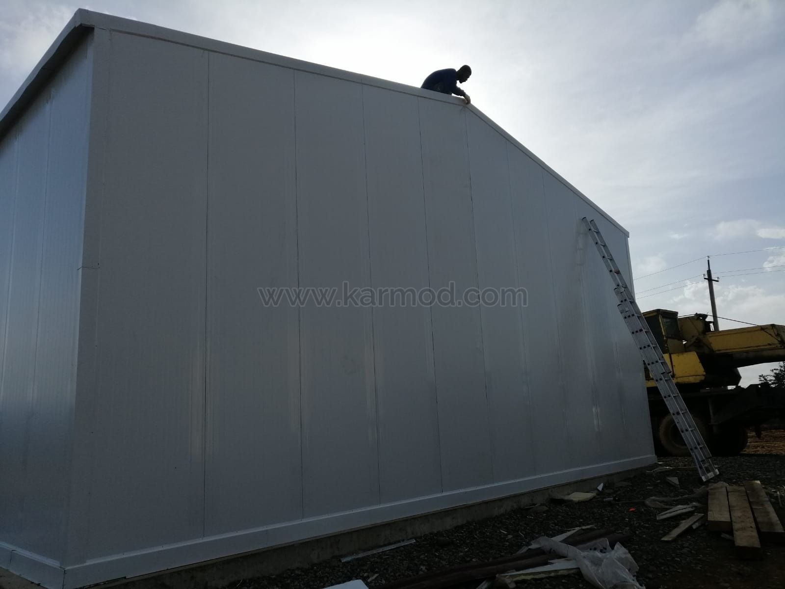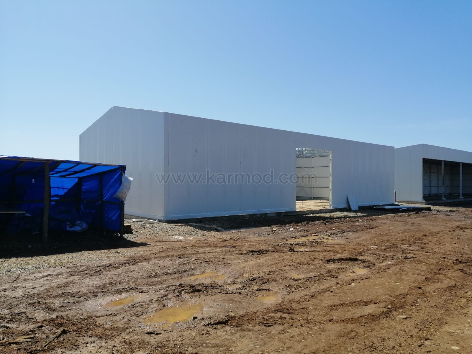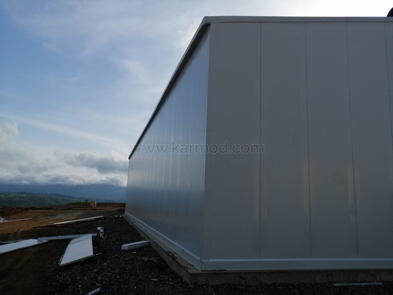 Производство 4 ангаров и 1 сборного дома по заказу компании, занимающейся сельскохозяйственной деятельностью, было завершено на современных мощностях Karmod в течение нескольких дней. После производства конструкции, погруженные на грузовики, были отправлены на проектную площадку в городе Зугдиди (Грузия) автомобильным транспортом. В тот момент, когда отгрузка была завершена, бригады Karmod приступили к монтажу, подготовленному на месте. Монтаж четырех отдельных зданий ангаров и одного сборного дома, построенных в рамках проекта, был завершен за короткое время - 18 дней.
