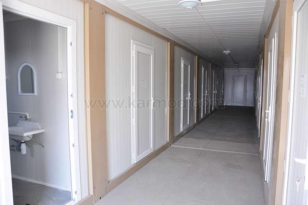 В новейшей модели контейнера учтены все преимущества Karmod, и в зонах объединения и крыше используются специальные герметичные ленты. Была достигнута максимальная изоляция благодаря системе сэндвич-панелей для стен и крыши. Винтовые отверстия были скрыты с помощью специальных облицовок, что придало зданию эстетичный вид.