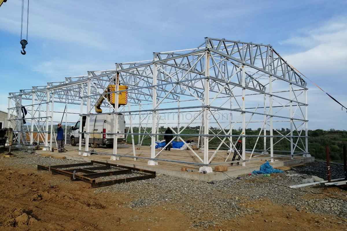Самым важным преимуществом стальных ангарных конструкций является то, что они имеют высокую площадь уровня при максимальном пролете. Это позволяет с комфортом использовать внутреннее пространство, включая большие сельскохозяйственные машины. В то же время ангарные конструкции, построенные с использованием стальной системы, имеют преимущество быстрого монтажа. Монтаж четырех отдельных ангарных конструкций общей площадью 700 м2 был выполнен за 18 дней. В этот период был установлен один сборный дом.