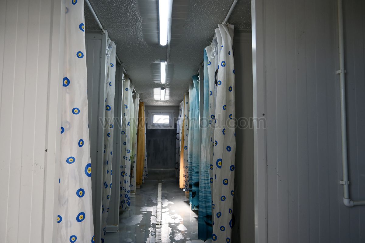 Этаж контейнерного общежития, построенного в районе Истасён района Халкалы, был рассчитан на 336 метров с размерами 16х21 метр. На каждом этаже с прогулочными коридорами разместили по 14 контейнерных единиц. Две из этих емкостей были размещены в торцах этажей в качестве унитазов и душевых кабин. На каждом этаже располагалось по 12 отдельных спальных комнат. В комнатах с двухъярусной системой кроватей могут разместиться 8 рабочих. В санузле 3х7 на каждом этаже было 7 отдельных туалетов. Аналогичным образом, душевой контейнер был спроектирован и изготовлен в количестве 7 единиц.
