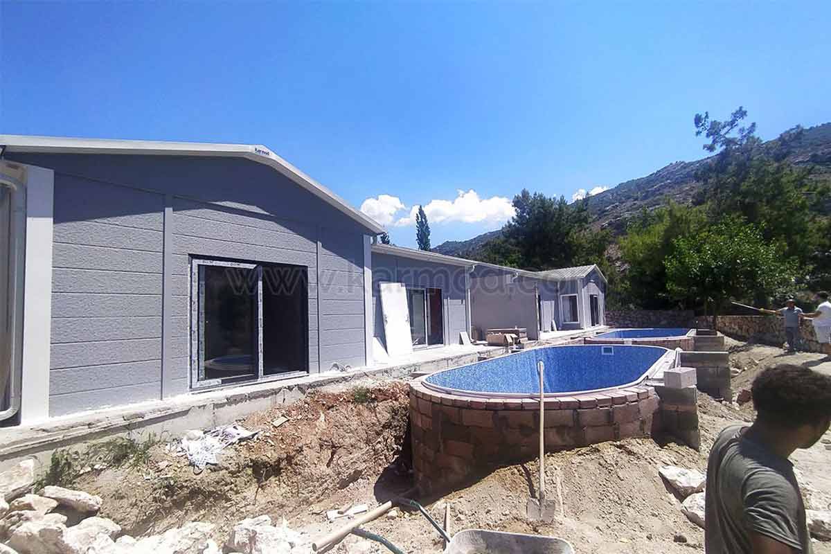Сборные дома имеют инновационную систему, которая исключает быструю установку и длительные процессы строительства с основной особенностью безопасной и долговечной модели. Быстрый монтаж без привлечения различных мастеров на стройплощадке - одно из самых больших преимуществ этой модели здания. Такая ситуация полностью устраняет проблему работы с большим количеством мастеров. Сборные дома устанавливаются и доставляются одной командой специалистов от стены до крыши, от электричества до водопровода, от двери до окна, вплоть до покраски. Время монтажа по крайней мере на 70 процентов быстрее, чем у обычных моделей зданий из железобетона. Установка каждого дома может быть завершена в короткие сроки в среднем за два-четыре дня. В то же время сборный дом гораздо доступнее классических моделей. По этой причине сознательный инвестор, который знает свой счет и хочет начать зарабатывать в короткие сроки, особенно предпочитает сборные дома в туристических домах.