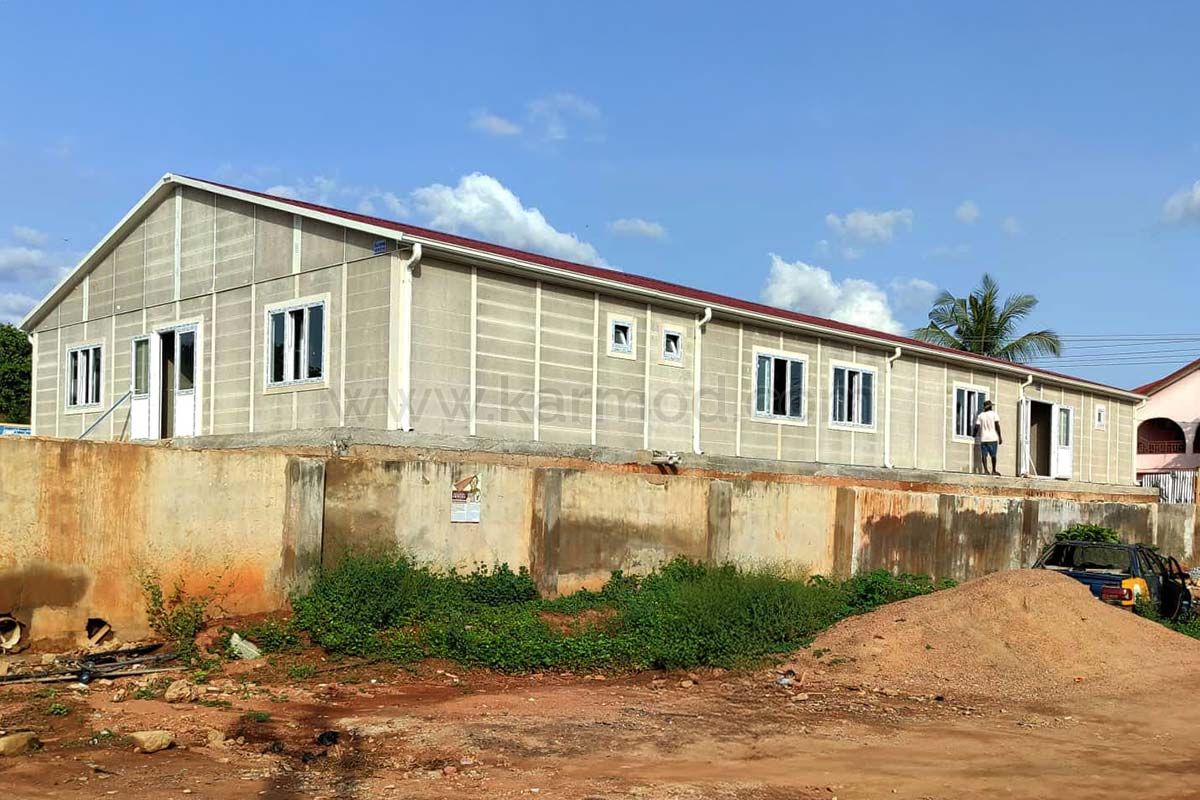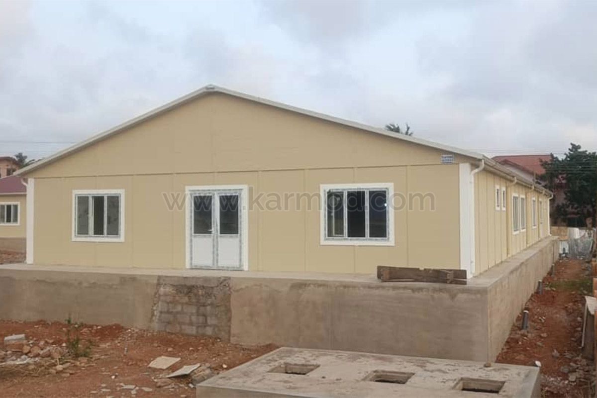 Отличительными особенностями сборных школьных зданий Karmod являются конструктивная безопасность и эргономичность. Преимущества сборной модели здания нашли свое отражение и в образовательных зданиях. Здание школы, произведенное на современном оборудовании Karmod с использованием новейших технологий, может быть легко отправлено в другие страны благодаря своей разборной конструкции. Сборные конструкции были отправлены в Аккру, столицу страны, расположенную на южном побережье Гвинейского залива в Атлантическом океане, морским контейнерным транспортом. В день доставки под наблюдением наших бригад на месте началась установка здания начальной школы с 8 классными комнатами.