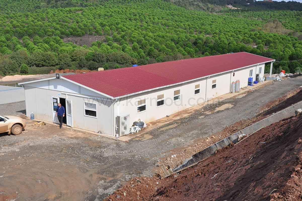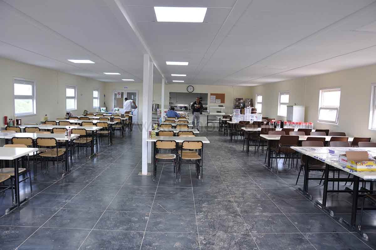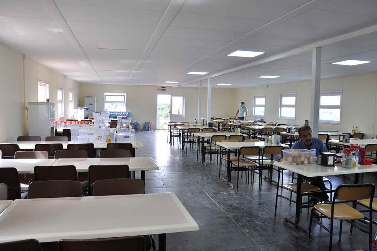 Одним из зданий, изготовленных и установленных компанией Karmod на строительной площадке, является здание столовой площадью 171 м2. Здание столовой разделено на три части: зал, зона приготовления пищи и подвал-склад. В зале, расположенном в передней части, одновременно могут принимать пищу 60 человек. В сборных кафетериях, которые являются очень практичными моделями зданий с точки зрения уборки, вместимость можно легко увеличить при планировании временных интервалов.