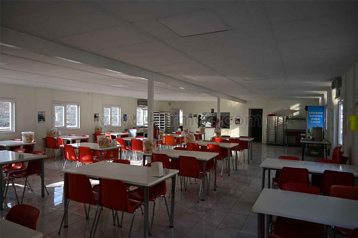 Сборное здание столовой, отличающееся просторным залом с точки зрения эргономики использования, превращает момент приема пищи в перерыв для работников. Просторная и большая внутренняя обстановка, лучшее освещение, простота кондиционирования воздуха летом и зимой с высокой теплоизоляцией обеспечивают комфорт всем, кто принимает пищу.